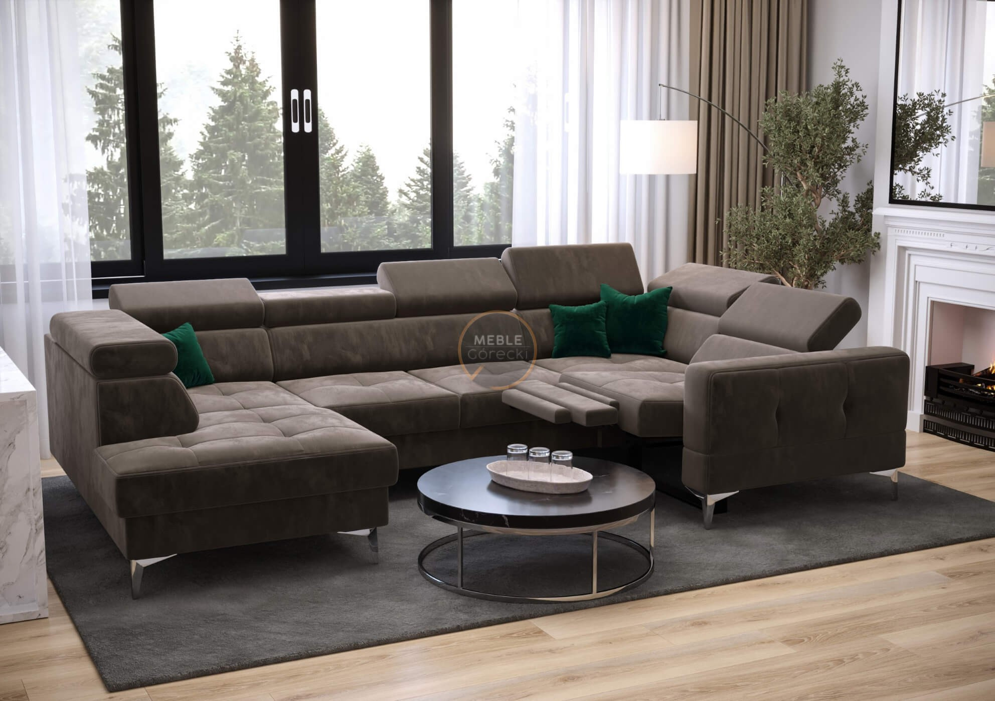 Rohová sedací souprava TOSCANIA MAX I , relax s funkcí spaní 170x350x185 cm - hnědá , pravá