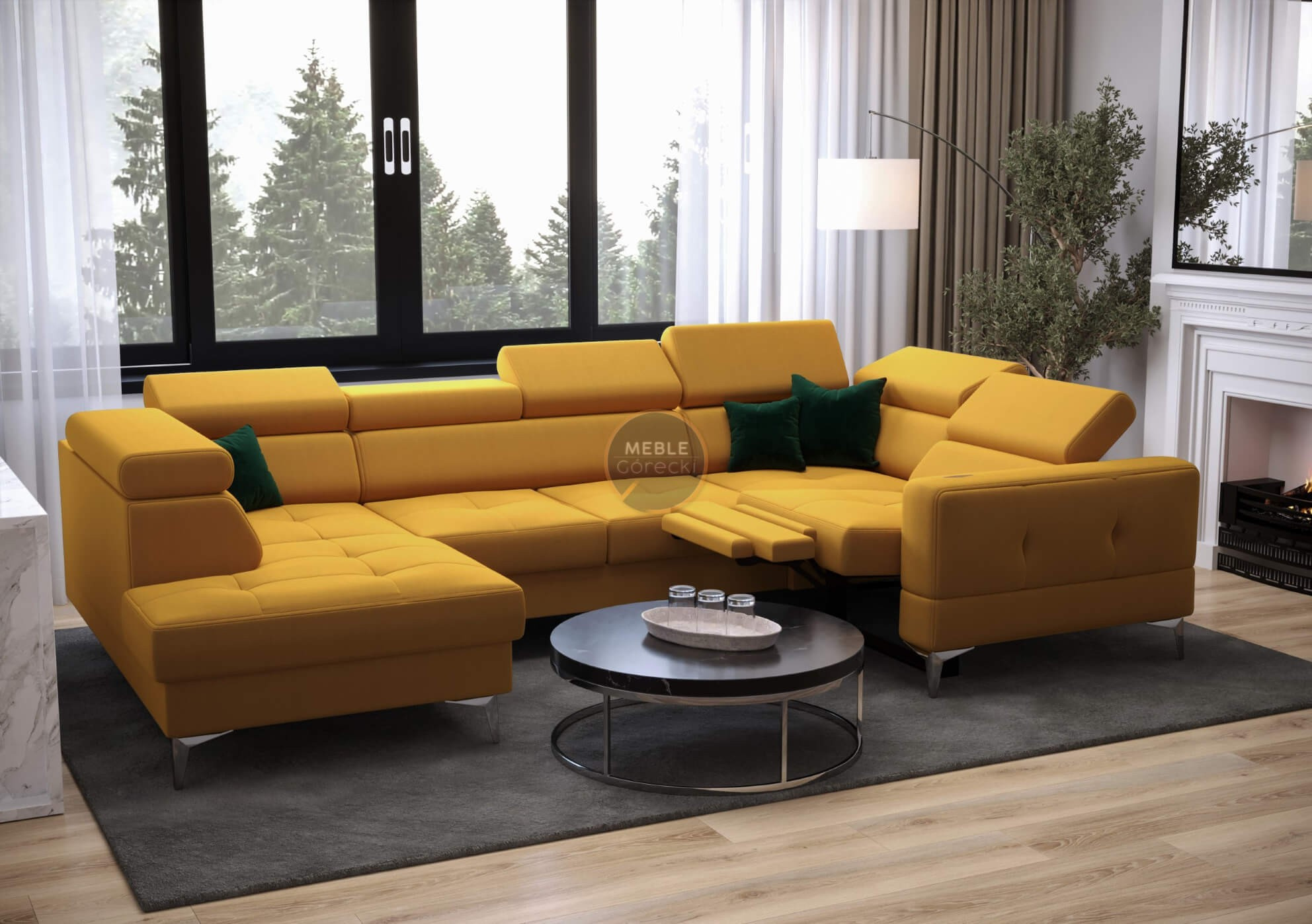 Rohová sedací souprava TOSCANIA MAX I , relax s funkcí spaní 170x350x185 cm - žlutá , pravá