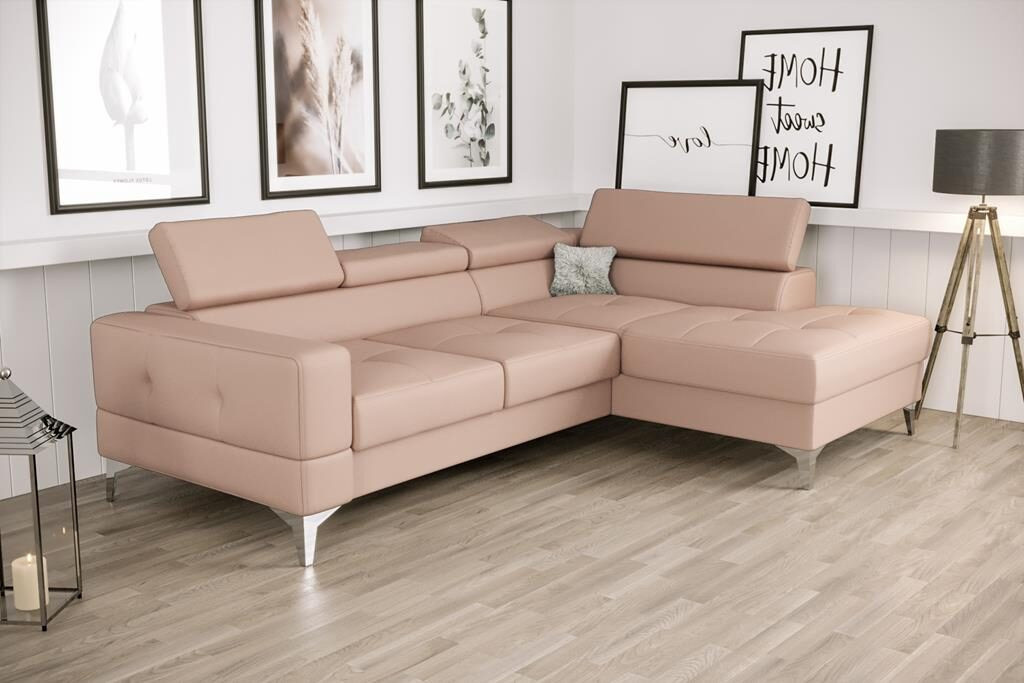 Rohová sedací souprava TOSCANIA MINI přírodní kůže 170x250 cm - růžová, pravá