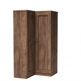 Velká rohová šatní skříň. Má čtyři police a tyč o délce 89 cm. Nad tyčí je umístěna další funkční police. K dispozici je také obrácená verze skříně. Na výběr ze dvou barevných provedení: dub lefkas a dub stoletý.