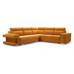 Rozkládací pohovka A2 ve tvaru písmene L je k dispozici v pravém i levém provedení, takže si ji každý bude moci přizpůsobit tvaru a rozměrům zařízeného interiéru. Model A2 s funkcí spaní je vybaven automatickou jednotkou MOS pro snadné rozložení; pod sedadlem je k dispozici prostorný úložný prostor na lůžkoviny. Rohová pohovka stojí na dřevěném rámu a chromovaných nohách, které zajišťují odolnost a stabilitu nábytku. Volně stojící kus nábytku A2 je na sedáku a opěráku vyplněn vlnitou pružinou a čalounickou pěnou T-30, které zajišťují odpovídající pružnost. Součástí rohové sedací soupravy jsou polštáře, které lze umístit na opěradlo - jsou ozdobně prošité a dodávají jí moderní vzhled. Nábytek je čalouněný látkou, jejíž barvy si lze vybrat podle individuálních preferencí ze vzorníku barev. Rohovou sedací soupravu s bočnicemi lze umístit jak do rohu místnosti, tak do jejího středu - zadní část nábytku je navíc esteticky čalouněná. Model A2 má dva vestavěné praktické úložné prostory - jeden je k dispozici ve formě výsuvné zásuvky, druhý je umístěn v jedné z područek. Rohová sedačka pro více osob nejen podtrhne jedinečný charakter zařízeného interiéru, ale také poskytne pohodlí a komfort i při mnohahodinovém odpočinku po náročném dni.