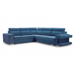 Rozkládací pohovka A2 ve tvaru písmene L je k dispozici v pravém i levém provedení, takže si ji každý bude moci přizpůsobit tvaru a rozměrům zařízeného interiéru. Model A2 s funkcí spaní je vybaven automatickou jednotkou MOS pro snadné rozložení; pod sedadlem je k dispozici prostorný úložný prostor na lůžkoviny. Rohová pohovka stojí na dřevěném rámu a chromovaných nohách, které zajišťují odolnost a stabilitu nábytku. Volně stojící kus nábytku A2 je na sedáku a opěráku vyplněn vlnitou pružinou a čalounickou pěnou T-30, které zajišťují odpovídající pružnost. Součástí rohové sedací soupravy jsou polštáře, které lze umístit na opěradlo - jsou ozdobně prošité a dodávají jí moderní vzhled. Nábytek je čalouněný látkou, jejíž barvy si lze vybrat podle individuálních preferencí ze vzorníku barev. Rohovou sedací soupravu s bočnicemi lze umístit jak do rohu místnosti, tak do jejího středu - zadní část nábytku je navíc esteticky čalouněná. Model A2 má dva vestavěné praktické úložné prostory - jeden je k dispozici ve formě výsuvné zásuvky, druhý je umístěn v jedné z područek. Rohová sedačka pro více osob nejen podtrhne jedinečný charakter zařízeného interiéru, ale také poskytne pohodlí a komfort i při mnohahodinovém odpočinku po náročném dni.
