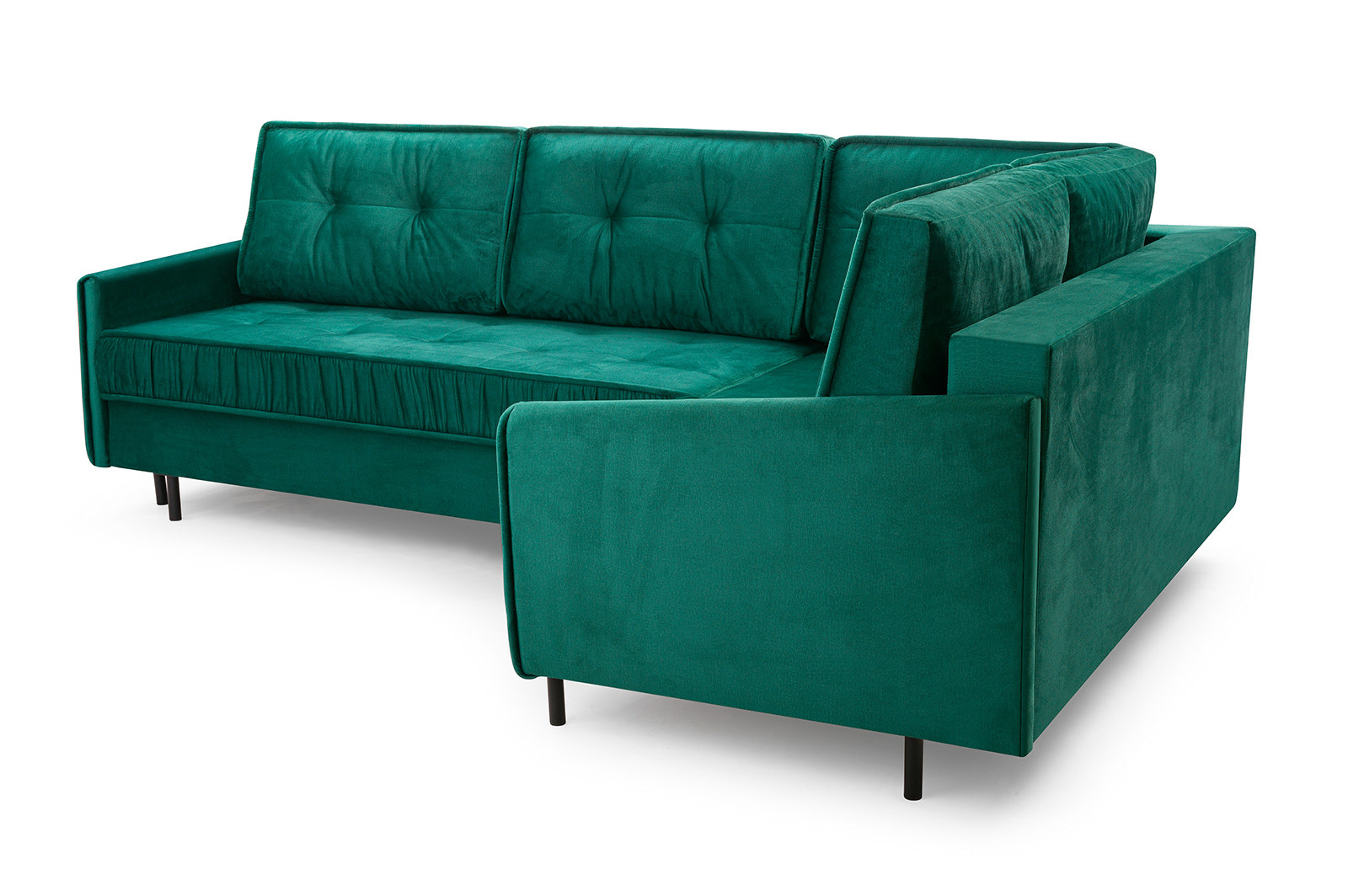 Moderní rohová sedací souprava Alaskan je design, který osloví i ty nejnáročnější uživatele, kteří ocení pohodlí při relaxaci a mimořádnou estetiku tohoto kusu nábytku. Tato tvarovaná rohová sedací souprava s pěknými tvary zaujme na první pohled minimalistickými černými nožkami, prošitím sedáku a ozdobnými polštáři na opěradle rohové sedací soupravy. Volně stojící kus nábytku s čalouněným opěradlem lze umístit nejen ke stěně, ale také do centrální části pokoje. Model Alaskan se vyznačuje rustikálním tvarem, díky němuž může sloužit jako místo pro odpočinek . Rohová sedací souprava ve tvaru písmene L je k dispozici v pravostranném nebo levostranném provedení, takže každý může nábytek přizpůsobit uspořádání místnosti a individuálním preferencím.