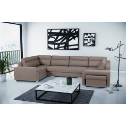 ALVARES U je masivní rohová sedací souprava ve tvaru U, která se vyrábí na objednávku. Rozkládací rohová pohovka je k dispozici v pravém nebo levém provedení, takže ji lze plně přizpůsobit individuálním preferencím a tvaru místnosti. Volně stojící kus nábytku je celý čalouněný látkou. Rohová pohovka je vybavena třemi prostornými kontejnery na lůžkoviny, do kterých se vejdou nejen přikrývky, peřiny a polštáře, ale také předměty, které chceme mít po ruce, ale nemáme pro ně dostatek místa ve skříních nebo zásuvkách.