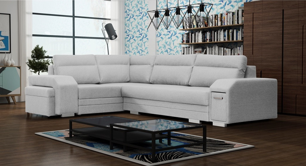 ALVARES je elegantní rohová sedací souprava ve tvaru písmene L s bočnicemi, která upoutá pozornost chromovanými nožičkami a úchytem spojeným s praktickým úložným prostorem na drobné doplňky. Stabilní konstrukce v podobě dřevěného rámu je k dispozici v pravostranném nebo levostranném provedení, takže si každý zákazník může prezentovaný model přizpůsobit individuálním preferencím i prostorovým možnostem. Rozkládací rohová sedací souprava je vybavena automatickým rozkládáním, díky kterému budete moci efektivně nahlédnout do dvou úložných prostorů na lůžkoviny a rohovou sedací soupravu rozložit. Zajímavým prvkem je zabudovaný prostor pro taburet v rohu, který je součástí soupravy, stejně jako ozdobné polštářky umístěné na mírně tvarovaném opěradle. Stylová rohová pohovka ALVARES s funkcí spaní je vyplněna vlnitými pružinami a čalounickou pěnou T-30, které zajišťují odpovídající odolnost a pružnost sedáku nebo opěráku. Představená rohová sedací souprava je celá čalouněná působivě vypadající látkou - je k dispozici v široké škále barev.
