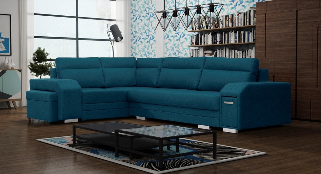 ALVARES je elegantní rohová sedací souprava ve tvaru písmene L s bočnicemi, která upoutá pozornost chromovanými nožičkami a úchytem spojeným s praktickým úložným prostorem na drobné doplňky. Stabilní konstrukce v podobě dřevěného rámu je k dispozici v pravostranném nebo levostranném provedení, takže si každý zákazník může prezentovaný model přizpůsobit individuálním preferencím i prostorovým možnostem. Rozkládací rohová sedací souprava je vybavena automatickým rozkládáním, díky kterému budete moci efektivně nahlédnout do dvou úložných prostorů na lůžkoviny a rohovou sedací soupravu rozložit. Zajímavým prvkem je zabudovaný prostor pro taburet v rohu, který je součástí soupravy, stejně jako ozdobné polštářky umístěné na mírně tvarovaném opěradle. Stylová rohová pohovka ALVARES s funkcí spaní je vyplněna vlnitými pružinami a čalounickou pěnou T-30, které zajišťují odpovídající odolnost a pružnost sedáku nebo opěráku. Představená rohová sedací souprava je celá čalouněná působivě vypadající látkou - je k dispozici v široké škále barev.