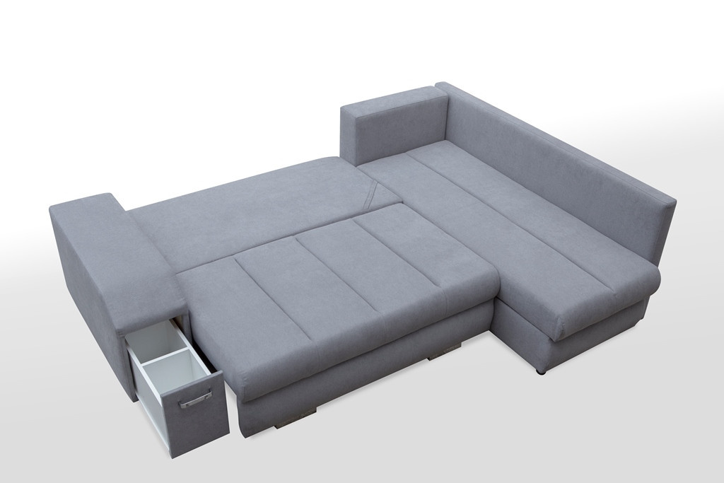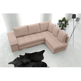 Rozkládací rohová pohovka ARNI s bočnicemi je k dispozici v pravostranném nebo levostranném provedení podle vašeho výběru. Rohová sedací souprava ve tvaru písmene L pro více osob najde své ideální místo v relaxačním a zároveň reprezentativním prostoru, například v obývacím pokoji - bude to kus nábytku zaručující pohodlí i při mnohahodinovém sezení. Model ARNI je vybaven spací funkcí, která nám umožní pohodlně a bezpečně ubytovat naše hosty. Nábytek je navržen s automatickým rozkládáním. Rohová sedací souprava je vyrobena na dřevěném rámu a čalouněna látkou, která je k dispozici v široké škále barev, z nichž si můžete vybrat. Stylová rohová sedací souprava s čalouněnými zády má dva prostorné úložné prostory na lůžkoviny a výsuvnou zásuvku se dvěma přihrádkami umístěnou v boční části, kam si můžete uložit věci, které potřebujete mít při odpočinku po ruce.