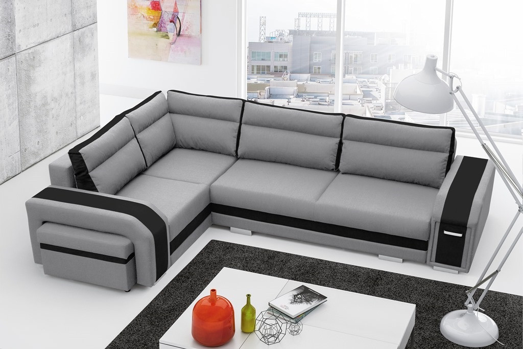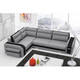 ASSAN je rozkládací rohová pohovka se dvěma prostornými lůžkovinami a funkcí spaní, díky níž lze rohovou pohovku rozložit. Rohová sedací souprava ve tvaru písmene L je k dispozici v pravém nebo levém provedení. Nábytek je vybaven automatickou rozkládací podpěrou, která umožní rychlé a efektivní skládání a rozkládání. Součástí rohové sedací soupravy ASSAN je praktický taburet s otevřeným sedákem, pro který je v nábytku zabudováno speciální místo. Rohová sedací souprava pro více osob má na jedné straně praktický úložný prostor, kde můžete mít po ruce potřebné drobné příslušenství. K dispozici jsou také dekorativní polštáře. Model ASSAN je vizuálně atraktivní rohová sedací souprava, která je nejen zárukou pohodlí při mnohahodinovém odpočinku, ale také zárukou toho, že v místnosti zůstane pořádek. Rohová sedací souprava s chromovanými nožkami je na spací ploše vyplněna vlnitou pružinou a čalounickou pěnou T-30. Nábytek s dřevěným rámem je čalouněn látkou, kterou si můžete vybrat z široké škály barev dostupných ve vzorníku.