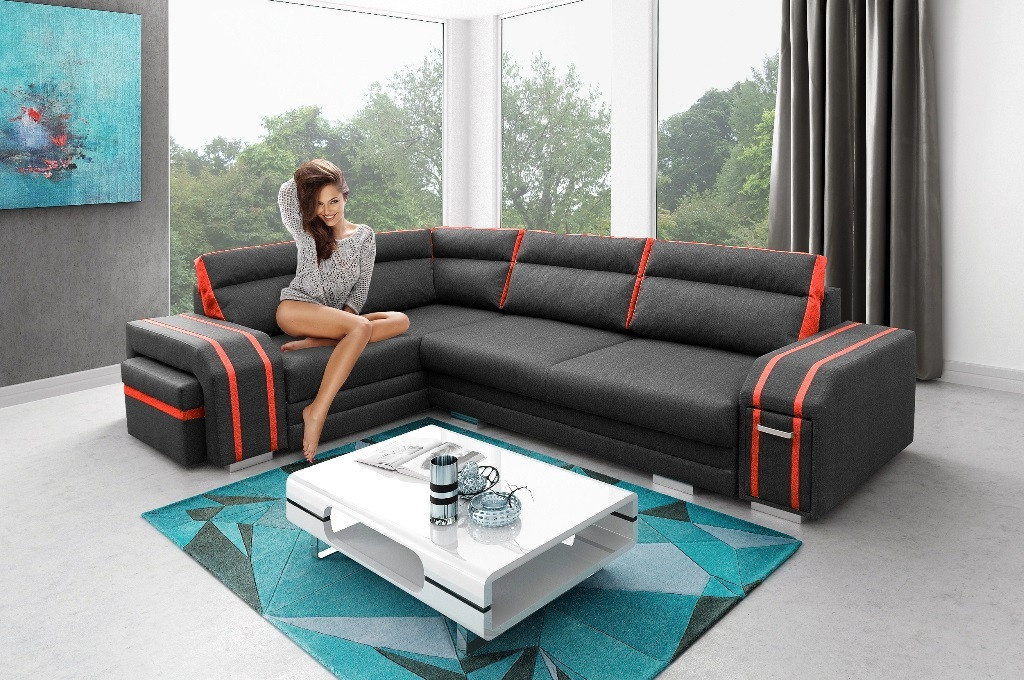 - rohová pohovka je k dispozici v pravém nebo levém provedení