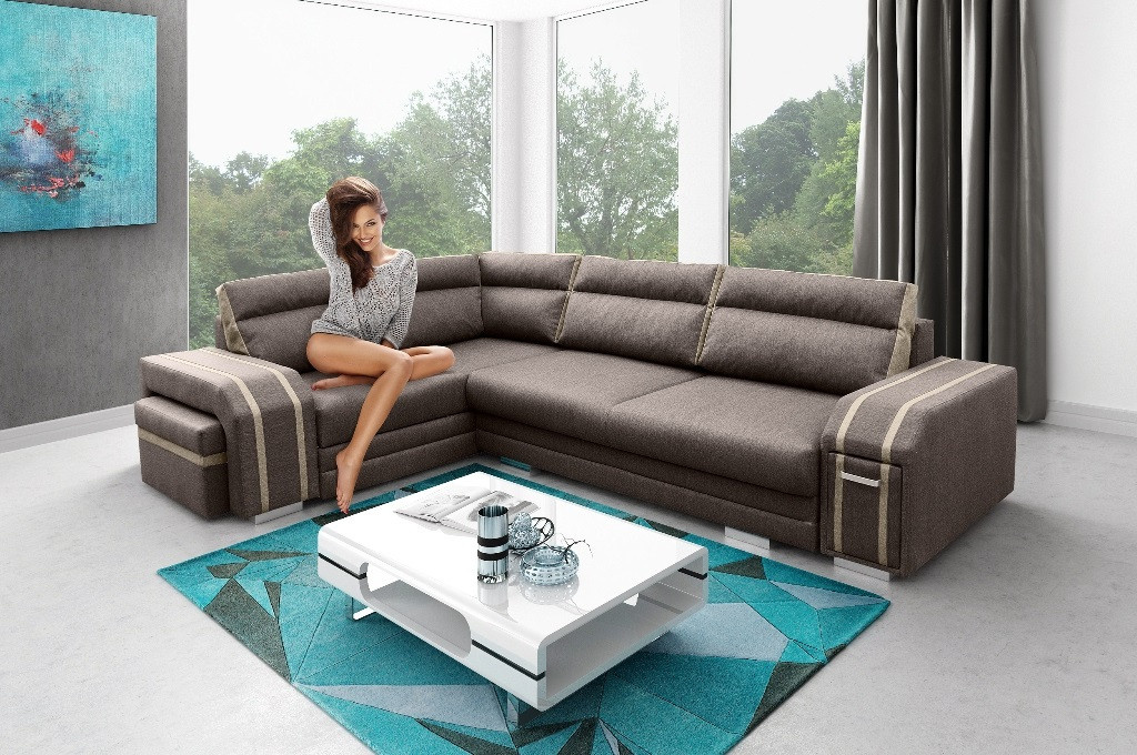 Moderní model rohové soupravy Avatar je čalouněný látkou, která je k dispozici v široké škále barev a druhů látek.