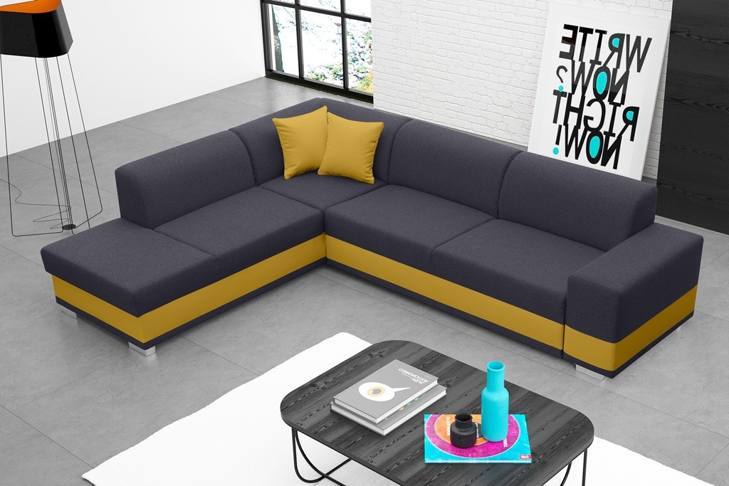 Rozměrná rohová sedací souprava DARCO je moderní sedací souprava ve tvaru L, kterou lze přizpůsobit dané místnosti díky možnosti výběru pravé nebo levé strany rohové sedací soupravy. Nádoba na lůžkoviny je u modelu DARCO k dispozici v bočním modulu, díky čemuž k ní bude mít každý uživatel snadný přístup - přikrývku, polštáře nebo jiné potřebné příslušenství lze kdykoli vyjmout. Rozkládací rohová pohovka s funkcí spaní se rozkládá, takže její uživatelé získají pohodlí a bezpečný spánek. Nábytek stojí na dřevěném rámu a dřevěných nohách, které jsou zárukou odolnosti, pevnosti a stability konstrukce. Moderní rohová sedací souprava DARCO je vyplněna vlnitou pružinou a čalounickou pěnou, díky čemuž jsou sedák a opěrák dostatečně pružné - nevznikají na nich nevzhledné promáčkliny ani deformace. U modelu DARCO jsou k dispozici dekorativní polštáře. Čalounění prezentovaného modelu lze vybrat podle individuálních preferencí z dostupného vzorníku barev.