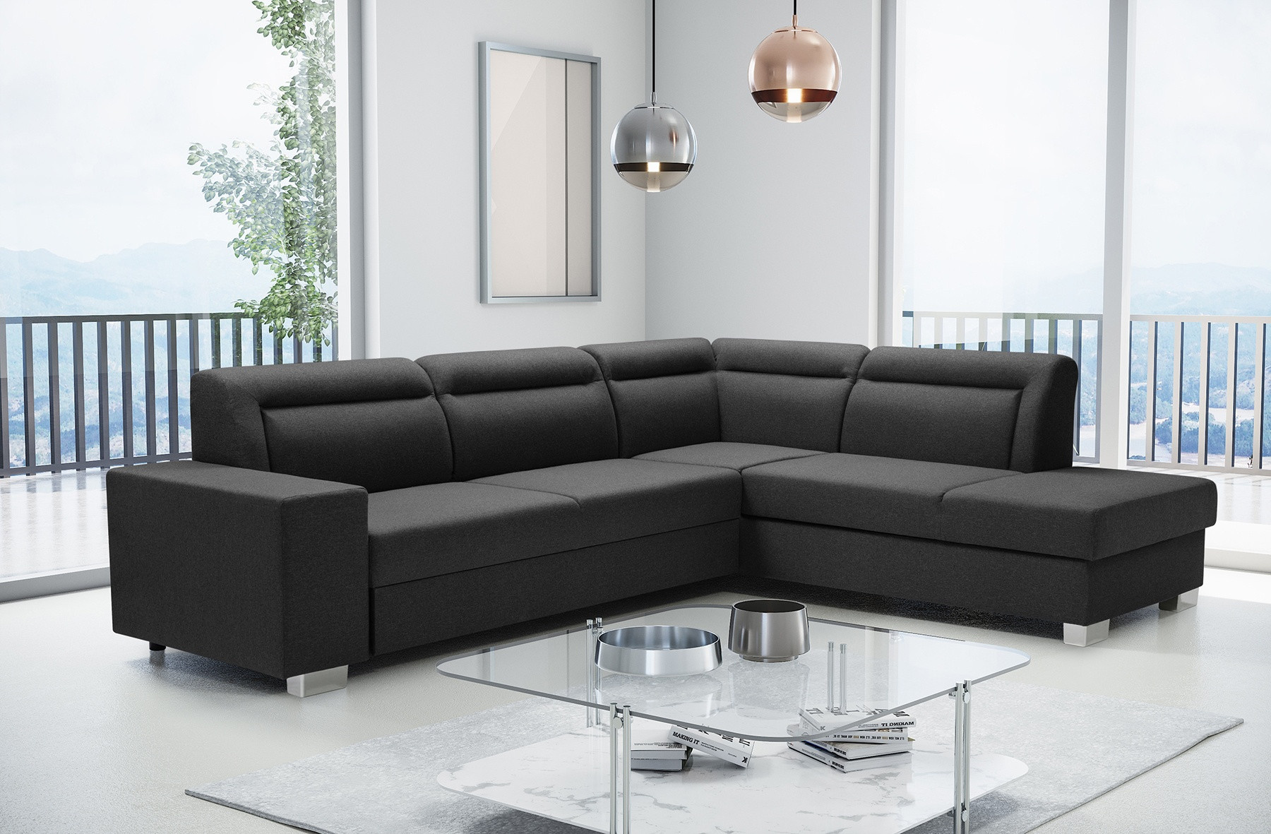 - rohová pohovka je k dispozici v pravém nebo levém provedení