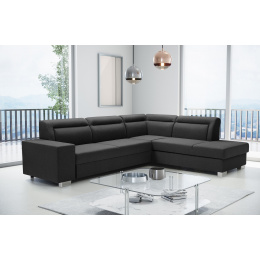Rozkládací pohovka DAVER ve tvaru L je k dispozici jako pravostranná nebo levostranná, takže ji budete moci bez větších problémů plně přizpůsobit uspořádanému pokoji. Rohová sedací souprava s funkcí spaní se stane praktickým vybavením obývacího pokoje i obývacího pokoje - přes den bude místem pro společný odpočinek, v noci se promění v pohodlné lůžko. Kromě funkce spaní je rohová pohovka pro více osob vybavena prostornou schránkou na polštáře, přikrývky a peřiny. Model DAVER je navíc vybaven automatickým rozkládáním typu delfín, díky kterému bude přeměna rohové pohovky na lůžko rychlá a velmi efektivní. Nábytek s dřevěným rámem je vyplněn vlnitými pružinami a pěnou T-30 v sedáku a pružnými pásy a HR pěnou na mírně profilovaném opěradle. Kvalitní výplň rohové pohovky zaručuje, že se na ní i přes každodenní používání neobjeví žádné nevzhledné promáčkliny nebo deformace. Představená rohová sedací souprava je volně stojící kus nábytku, jehož barevné provedení si můžete vybrat z bohatého vzorníku barev. Moderně vyhlížející rohová pohovka s ozdobným prošíváním stojí na chromových nohách, které zajišťují maximální stabilitu a odolnost konstrukce.