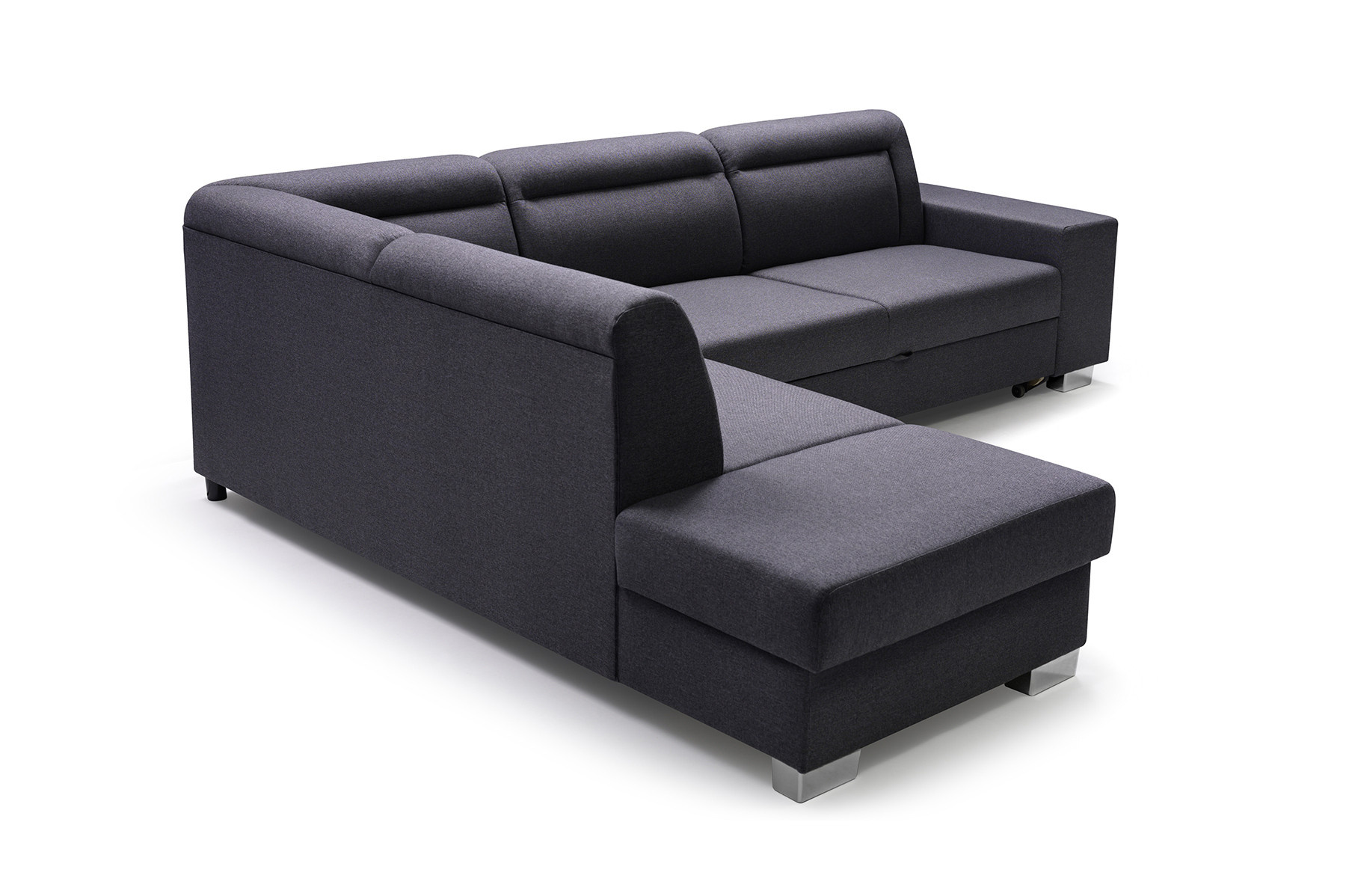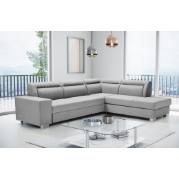 Rozkládací pohovka DAVER ve tvaru L je k dispozici jako pravostranná nebo levostranná, takže ji budete moci bez větších problémů plně přizpůsobit uspořádanému pokoji. Rohová sedací souprava s funkcí spaní se stane praktickým vybavením obývacího pokoje i obývacího pokoje - přes den bude místem pro společný odpočinek, v noci se promění v pohodlné lůžko. Kromě funkce spaní je rohová pohovka pro více osob vybavena prostornou schránkou na polštáře, přikrývky a peřiny. Model DAVER je navíc vybaven automatickým rozkládáním typu delfín, díky kterému bude přeměna rohové pohovky na lůžko rychlá a velmi efektivní. Nábytek s dřevěným rámem je vyplněn vlnitými pružinami a pěnou T-30 v sedáku a pružnými pásy a HR pěnou na mírně profilovaném opěradle. Kvalitní výplň rohové pohovky zaručuje, že se na ní i přes každodenní používání neobjeví žádné nevzhledné promáčkliny nebo deformace. Představená rohová sedací souprava je volně stojící kus nábytku, jehož barevné provedení si můžete vybrat z bohatého vzorníku barev. Moderně vyhlížející rohová pohovka s ozdobným prošíváním stojí na chromových nohách, které zajišťují maximální stabilitu a odolnost konstrukce.