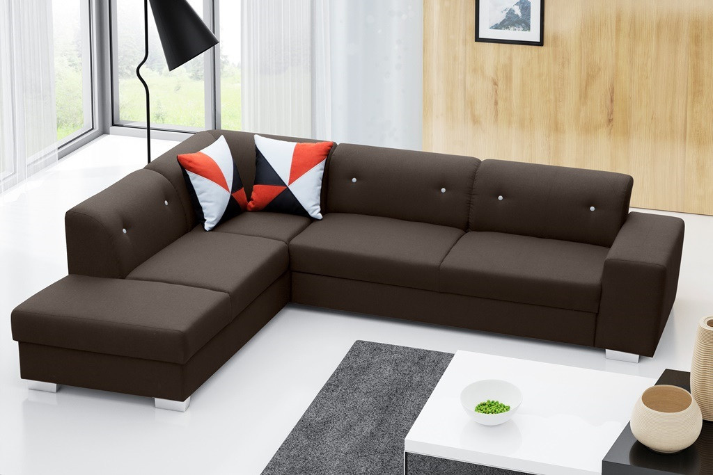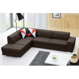 DIDI je moderní rohová sedací souprava ve tvaru písmene L, která je vybavena praktickým kontejnerem na lůžkoviny a funkcí spaní, díky níž budeme moci pohodlně a komfortně ubytovat pozvané hosty. Rohová sedací souprava bude nejen ideálním prvkem obývacího pokoje, ale také obývacího pokoje, protože se v noci může proměnit v pohodlné lůžko. Volně stojící kus nábytku má čalouněná záda, takže jej lze umístit nejen ke stěně, ale i do centrální části místnosti. K rohové pohovce DIDI jsou k dispozici dva dekorační polštáře, které podtrhují modernistický charakter designu. Rozkládací rohová sedací souprava s dřevěným rámem je podepřena chromovanými nohami, které jsou nejen zajímavým stylistickým akcentem, ale také zajišťují dostatečnou stabilitu a odolnost nábytku. Zde představená rohová sedací souprava je k dispozici v pravostranném nebo levostranném provedení, takže si ji každý bude moci přizpůsobit svým individuálním preferencím. Rohová jednostranná pohovka je vyplněna čalounickou pěnou a vlnitou pružinou, které jí zaručují dostatečnou pružnost.