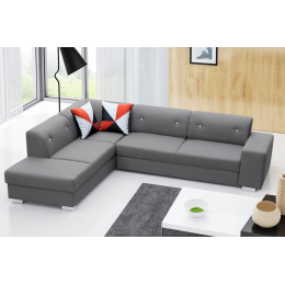 DIDI je moderní rohová sedací souprava ve tvaru písmene L, která je vybavena praktickým kontejnerem na lůžkoviny a funkcí spaní, díky níž budeme moci pohodlně a komfortně ubytovat pozvané hosty. Rohová sedací souprava bude nejen ideálním prvkem obývacího pokoje, ale také obývacího pokoje, protože se v noci může proměnit v pohodlné lůžko. Volně stojící kus nábytku má čalouněná záda, takže jej lze umístit nejen ke stěně, ale i do centrální části místnosti. K rohové pohovce DIDI jsou k dispozici dva dekorační polštáře, které podtrhují modernistický charakter designu. Rozkládací rohová sedací souprava s dřevěným rámem je podepřena chromovanými nohami, které jsou nejen zajímavým stylistickým akcentem, ale také zajišťují dostatečnou stabilitu a odolnost nábytku. Zde představená rohová sedací souprava je k dispozici v pravostranném nebo levostranném provedení, takže si ji každý bude moci přizpůsobit svým individuálním preferencím. Rohová jednostranná pohovka je vyplněna čalounickou pěnou a vlnitou pružinou, které jí zaručují dostatečnou pružnost.