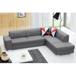 DIDI je moderní rohová sedací souprava ve tvaru písmene L, která je vybavena praktickým kontejnerem na lůžkoviny a funkcí spaní, díky níž budeme moci pohodlně a komfortně ubytovat pozvané hosty. Rohová sedací souprava bude nejen ideálním prvkem obývacího pokoje, ale také obývacího pokoje, protože se v noci může proměnit v pohodlné lůžko. Volně stojící kus nábytku má čalouněná záda, takže jej lze umístit nejen ke stěně, ale i do centrální části místnosti. K rohové pohovce DIDI jsou k dispozici dva dekorační polštáře, které podtrhují modernistický charakter designu. Rozkládací rohová sedací souprava s dřevěným rámem je podepřena chromovanými nohami, které jsou nejen zajímavým stylistickým akcentem, ale také zajišťují dostatečnou stabilitu a odolnost nábytku. Zde představená rohová sedací souprava je k dispozici v pravostranném nebo levostranném provedení, takže si ji každý bude moci přizpůsobit svým individuálním preferencím. Rohová jednostranná pohovka je vyplněna čalounickou pěnou a vlnitou pružinou, které jí zaručují dostatečnou pružnost.