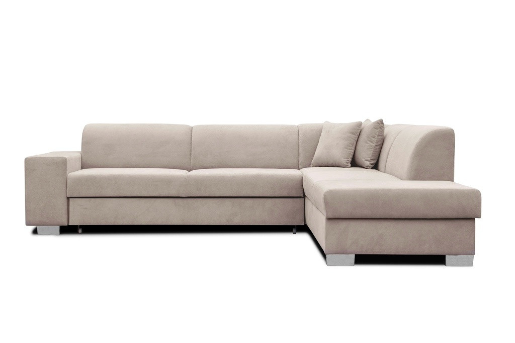 DIEGO je vysoce estetická rohová sedací souprava, která nejen doplní moderní uspořádání obývacího pokoje, ale také zajistí pohodlí a komfort i při mnohahodinovém používání. Rohová pohovka s funkcí spaní je vybavena chromovanými nožkami, které podtrhují modernistický charakter konstrukce. Funkce spaní umožňuje rychlé a efektivní rozložení rohové pohovky, což zaručuje pohodlí a bezpečnost při spaní. Rohová sedací souprava pro více osob je čalouněná látkou, která je k dispozici v široké škále barev, z nichž si můžete vybrat. Volně stojící rohovou pohovku DIEGO lze umístit ke stěně i do centrální části místnosti. Dřevěný rám je vyplněn čalounickou pěnou T-30 a na sedáku je vlnitá pružina. Součástí rohové pohovky DIEGO jsou dekorační polštáře, které působí impozantně a podtrhují moderní charakter designu. Rohová sedací souprava DIEGO ve tvaru písmene L je k dispozici v pravostranném nebo levostranném provedení, takže ji každý může přizpůsobit uspořádané místnosti. Rohová pohovka s jednou stranou bude vypadat skvěle a zároveň zaručí svým uživatelům komfortní odpočinek.