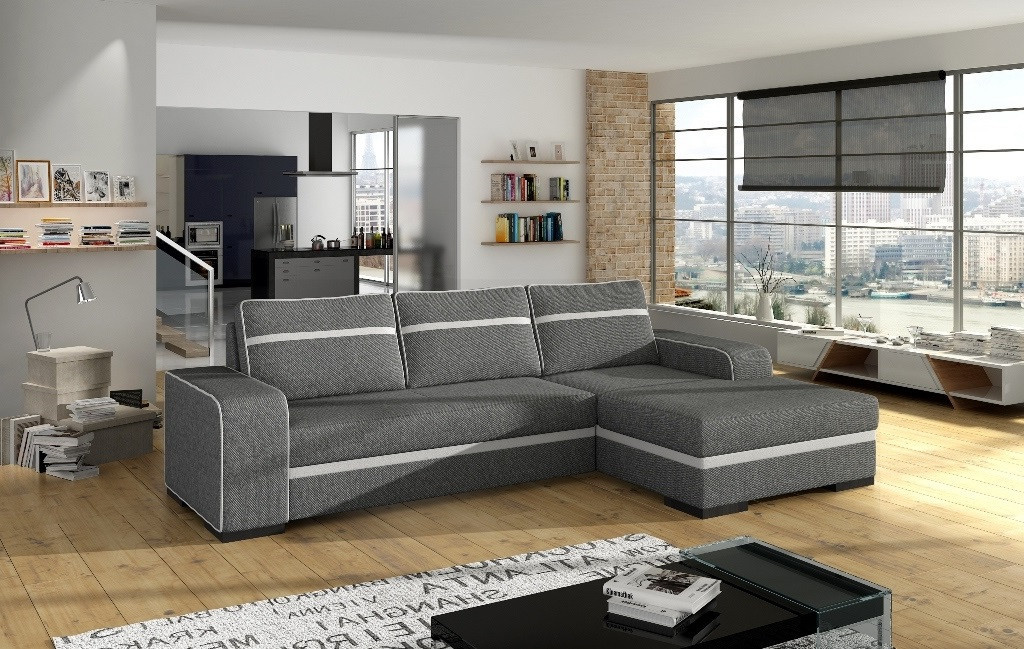 FINN je třímístná rohová pohovka ve tvaru písmene L, která je k dispozici v pravém nebo levém provedení. Moderní rohová pohovka je vybavena prostorným kontejnerem na lůžkoviny, který zaručuje dostatek místa pro uložení polštářů, přikrývek nebo ložního prádla. Rohová pohovka s funkcí spaní umožňuje rychlé a efektivní rozložení konstrukce, takže naši hosté mají zaručené bezpečí a pohodlí při nočním odpočinku. Rohová sedací souprava FINN s bočnicemi je k dispozici v široké škále barev. Volně stojící rohová pohovka má čalouněná záda, takže ji lze bez větších problémů umístit do centrální části místnosti, nikoli jen ke stěně. Rohová pohovka pro více osob je umístěna na dřevěném rámu a dřevěných nohách, které zaručují zvýšenou stabilitu, pevnost a odolnost konstrukce. FINN upoutá pozornost dekorativními vložkami v barevném provedení odlišném od rohové skříňky. Výplň tohoto elegantního kusu nábytku tvoří vlnité pružiny a čalounická pěna, tedy materiály zajišťující správnou pružnost. Součástí rohové pohovky jsou tři dekorační polštáře, které maximalizují pohodlí vašeho odpočinku.