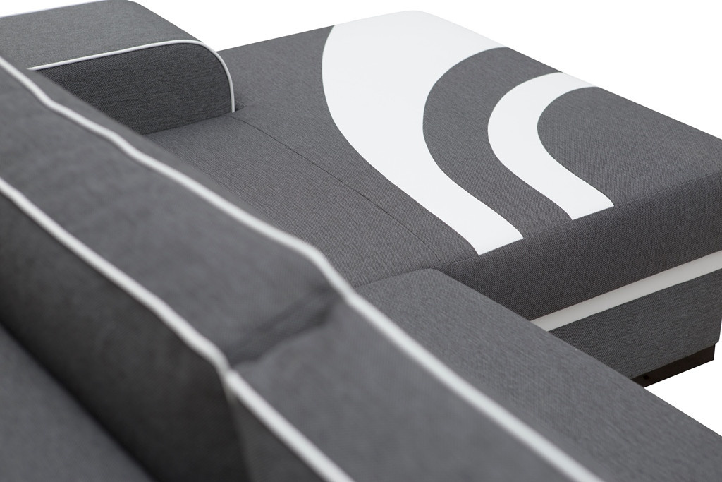 Moderní rohová sedací souprava FLORES je určena pro více osob a osloví i ty nejnáročnější uživatele. Rohová souprava ve tvaru L je k dispozici v pravostranném nebo levostranném provedení, takže si ho každý může přizpůsobit uspořádání místnosti. Volně stojící rohová sedací souprava se vyznačuje čalouněnými zády, díky nimž ji lze umístit nejen k obývací stěně, ale i do její střední části. Rohová sedací souprava FLORES s bočnicemi je vybavena funkcí spaní, která umožňuje nábytek rozložit, a také prostornou schránkou na lůžkoviny, do které se snadno vejdou polštáře, přikrývky a deky pro příjemný, pohodlný a bezpečný spánek. Elegantní rohová pohovka s dřevěným rámem se vyznačuje zvýšenou odolností a stabilitou, a to i přes každodenní používání. Nábytek stojí na dřevěných nohách z tmavého ořechu. Moderní rohová sedací souprava s mírně profilovaným opěradlem je vyplněna čalounickou pěnou a vlnitými pružinami, díky nimž se na modelu FLORES neobjeví žádné nevzhledné deformace. Volně stojící rohovou pohovku do obývacího pokoje lze čalounit látkou, která je k dispozici v široké škále barev. FLORES v základní verzi je vybaven vložkami z bílé ekokůže - na výběr je i z jiných látek. Stylová rohová pohovka ve tvaru písmene L zaujme atraktivním designem, který se skvěle hodí do obývacího pokoje zařízeného v moderním estetickém stylu.