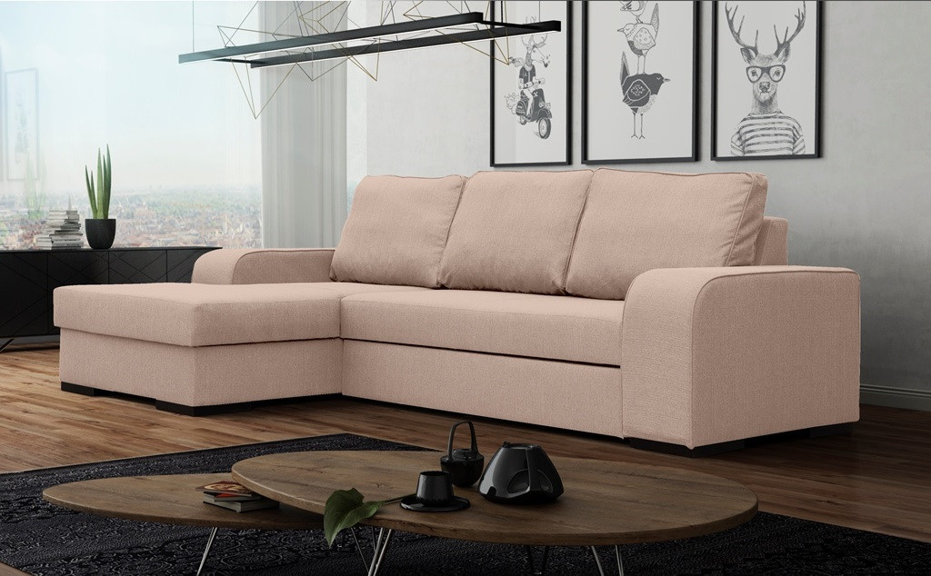 - rohová pohovka je k dispozici v pravém nebo levém provedení