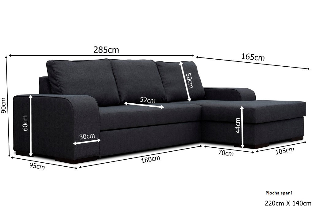 - rohová pohovka je k dispozici v pravém nebo levém provedení
