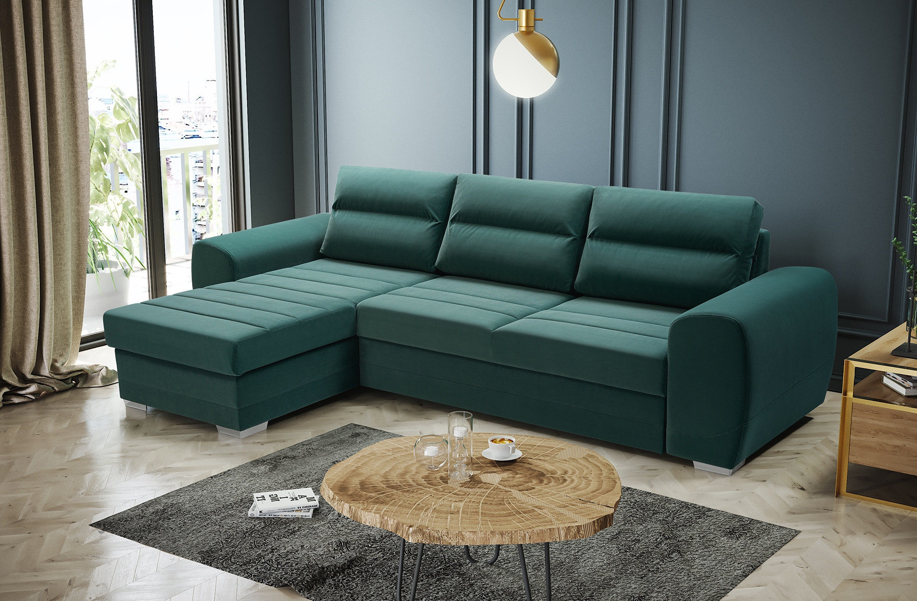 • čalouněná zadní část rohové pohovky