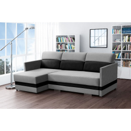 Moderní rohová sedací souprava KOLIBER je rozkládací jednotka, která je k dispozici v pravostranném nebo levostranném provedení. Rohová pohovka ve tvaru písmene L je vybavena dvěma prostornými úložnými prostory na lůžkoviny a funkcí spaní, která v případě potřeby poskytne pozvaným hostům pohodlné a bezpečné místo na spaní. Nábytek je umístěn na dřevěném rámu s chromovanými nohami. Úhledná rohová sedací souprava je vyplněna vlnitou pružinou a čalounickou pěnou, které se starají o zachování odpovídající pružnosti nábytku - nevznikají na něm nevzhledné deformace. Součástí volně stojícího nábytku jsou ozdobné polštáře, které lze umístit na opěradlo. Dvoubarevná rohová sedací souprava KOLIBER je vyrobena z látky, která je k dispozici v široké škále barev, z nichž si můžete vybrat. Představená rohová sedací souprava KOLIBER zaujme nejen svým originálním designem, ale také poskytne pohodlí i pro hodiny odpočinku ve společnosti rodiny nebo přátel.