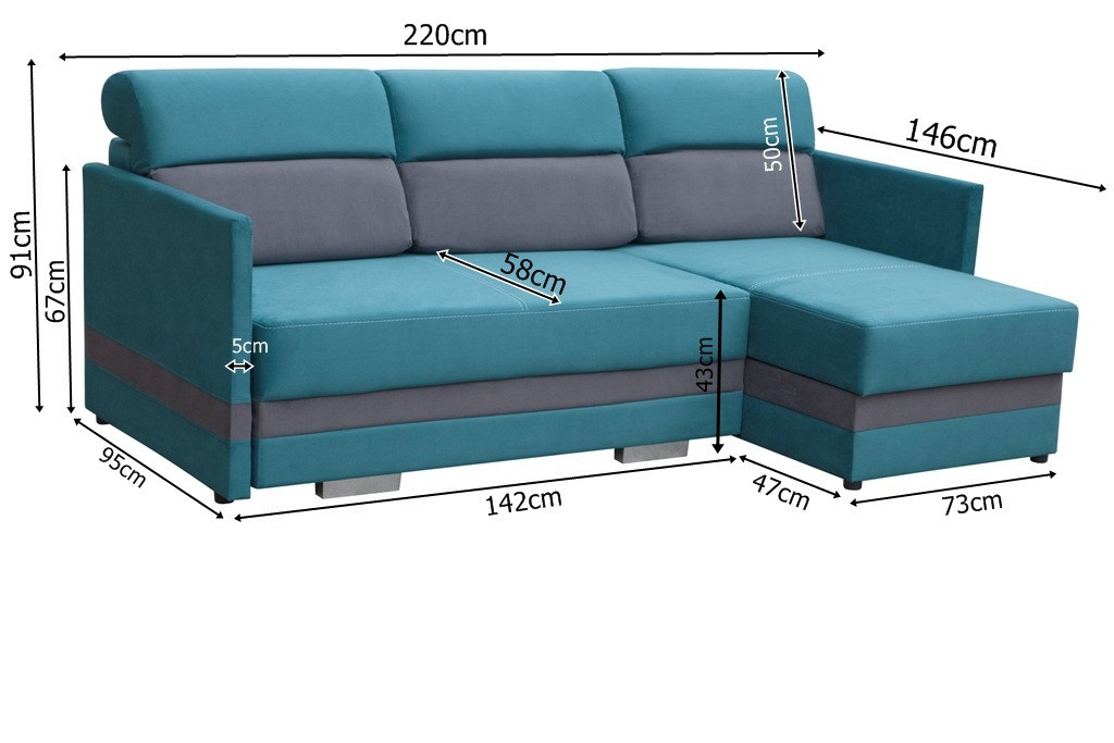 - rohová pohovka je k dispozici v pravém nebo levém provedení