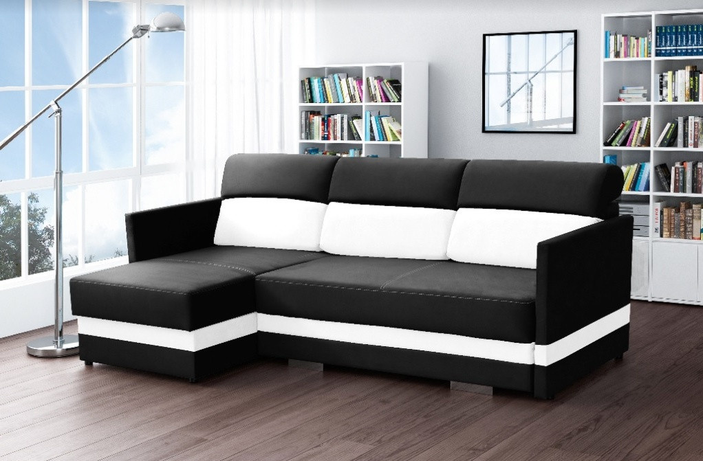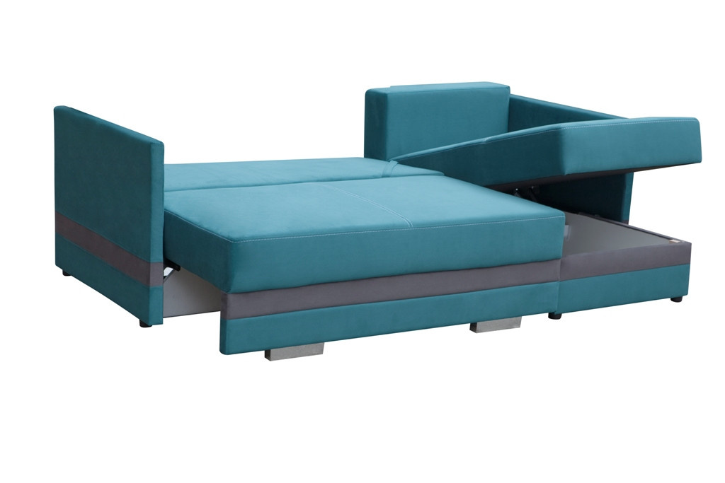 Moderní rohová sedací souprava KOLIBER je rozkládací jednotka, která je k dispozici v pravostranném nebo levostranném provedení. Rohová pohovka ve tvaru písmene L je vybavena dvěma prostornými úložnými prostory na lůžkoviny a funkcí spaní, která v případě potřeby poskytne pozvaným hostům pohodlné a bezpečné místo na spaní. Nábytek je umístěn na dřevěném rámu s chromovanými nohami. Úhledná rohová sedací souprava je vyplněna vlnitou pružinou a čalounickou pěnou, které se starají o zachování odpovídající pružnosti nábytku - nevznikají na něm nevzhledné deformace. Součástí volně stojícího nábytku jsou ozdobné polštáře, které lze umístit na opěradlo. Dvoubarevná rohová sedací souprava KOLIBER je vyrobena z látky, která je k dispozici v široké škále barev, z nichž si můžete vybrat. Představená rohová sedací souprava KOLIBER zaujme nejen svým originálním designem, ale také poskytne pohodlí i pro hodiny odpočinku ve společnosti rodiny nebo přátel.