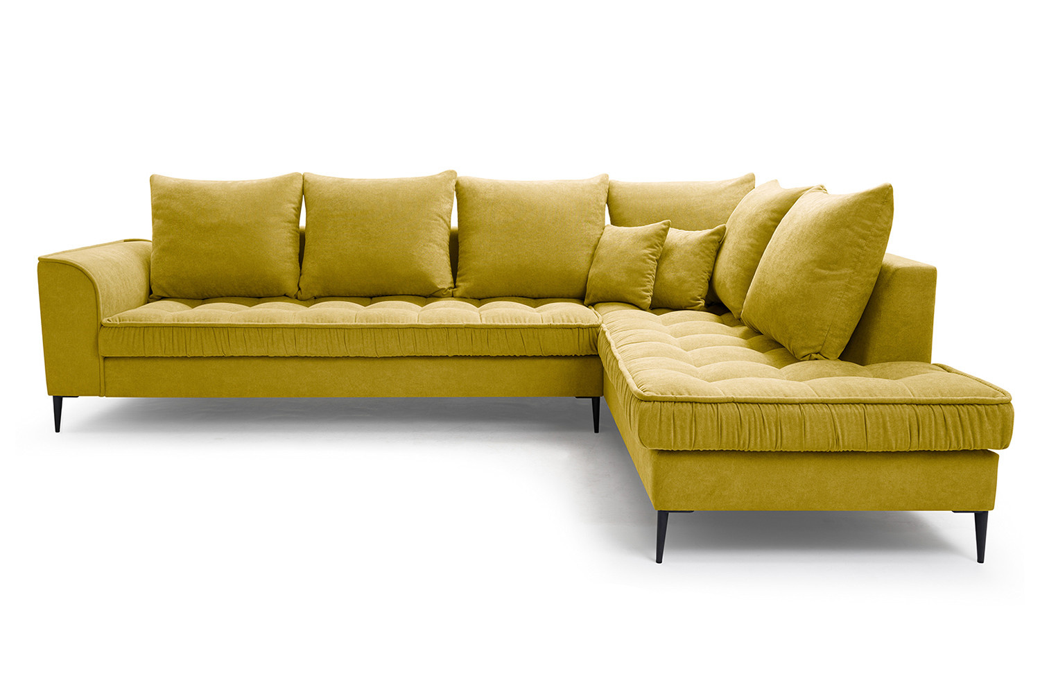 Prošívaná rohová pohovka LENA je kus nábytku ve skandinávském stylu. Skvěle se hodí do moderních i tradičnějších interiérů. Silikonová vložka s kuličkami použitá na sedadle zajišťuje neuvěřitelné pohodlí. Vysoké, pevné nohy jsou skvělým vizuálním doplňkem. Díky výplni z kvalitní vlnité pružiny a PU pěny je komfort odpočinku znatelně vysoký. Rohová sedací souprava LENA je kus nábytku, který dokonale zapadne do každého interiéru. Díky široké nabídce látek a barev si jistě vyberete něco podle svého vkusu.