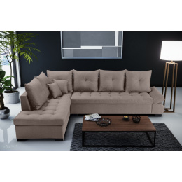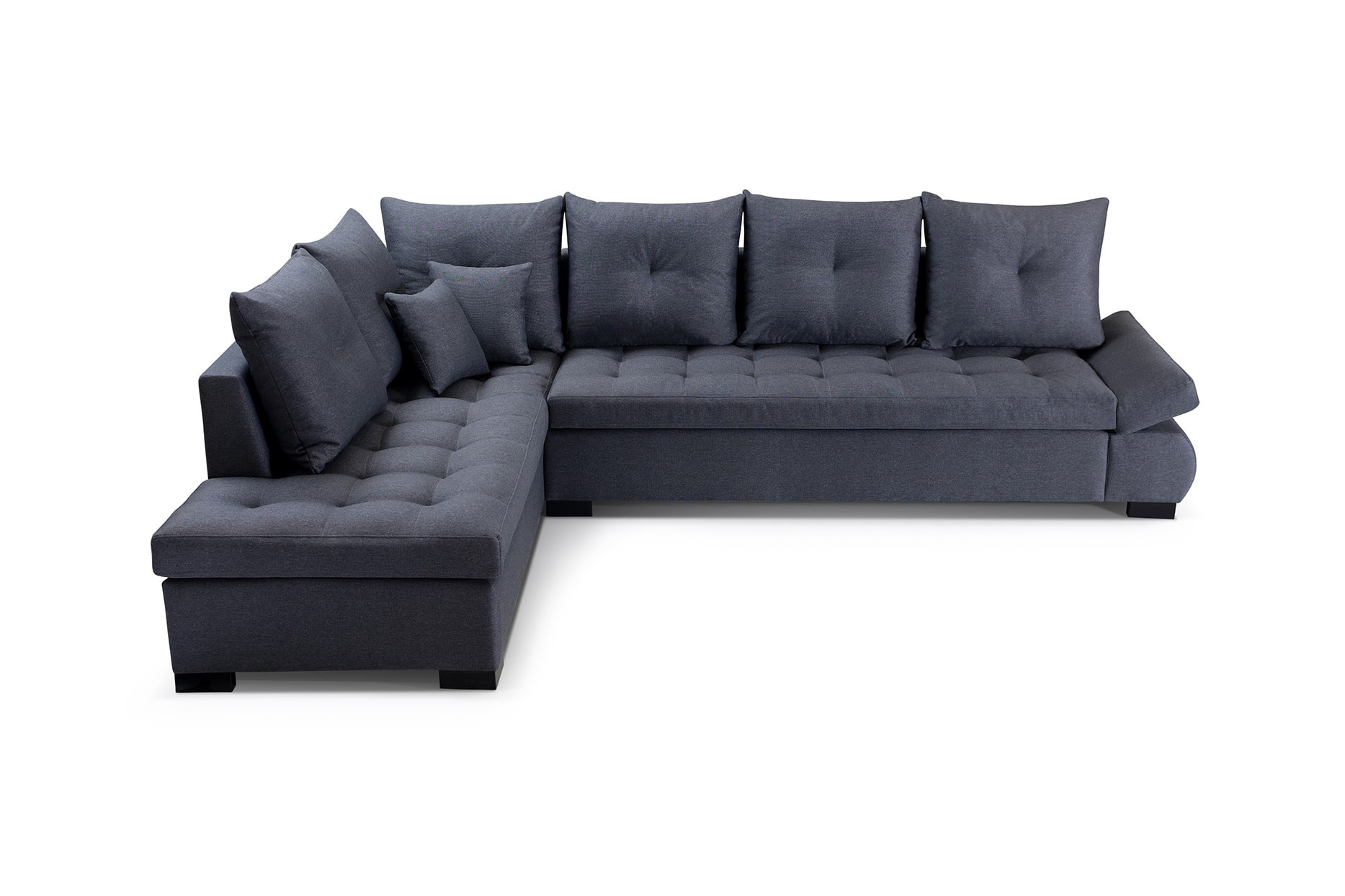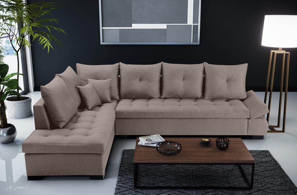 Rohová sedací souprava LORD má konstrukci ve tvaru písmene L a je k dispozici v pravostranném nebo levostranném provedení podle vašeho výběru. Nábytek je vyplněn vlnitou pružinou, čalounickou pěnou a rounem a zajistí pohodlí i po několika hodinách odpočinku nebo odpoledního spánku. Rohová pohovka je vybavena nastavitelnou područkou, která je ideální pro použití jako opěrka hlavy při odpoledním spánku. Rohová pohovka pro více osob s jednou stranou je čalouněná látkou, jejíž barvy si můžete vybrat z široké nabídky barev ve vzorníku. Stylová rohová pohovka zaujme prošívaným sedákem a polštáři umístěnými na opěradle, které jsou rovněž minimálně prošívané. Rohová sedací souprava LORD bude v zařízeném pokoji nejen působivě vypadat, ale zaručí také pohodlí při odpočinku s knihou v ruce nebo při sledování televize.
