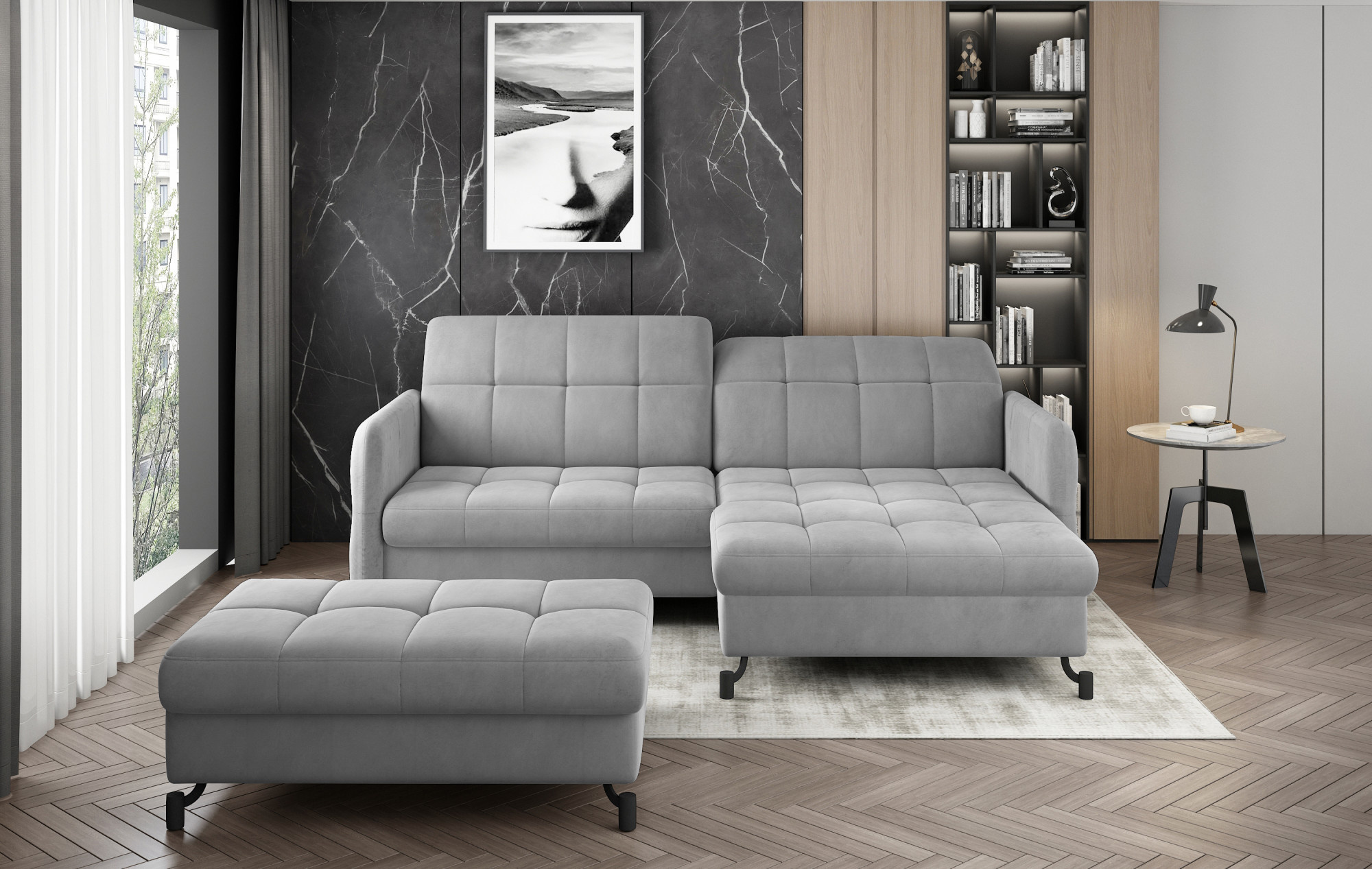 Rohová sedací souprava LORELLE + Taburet Monolith 84 110x200 Pravý 1