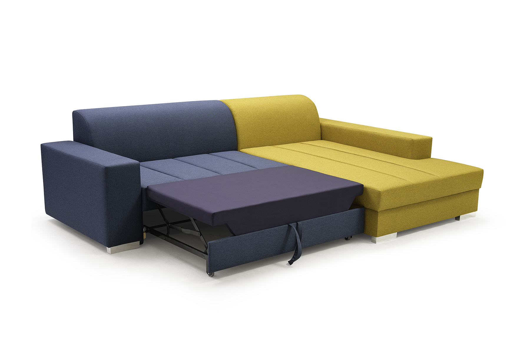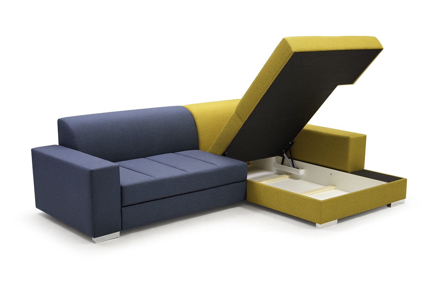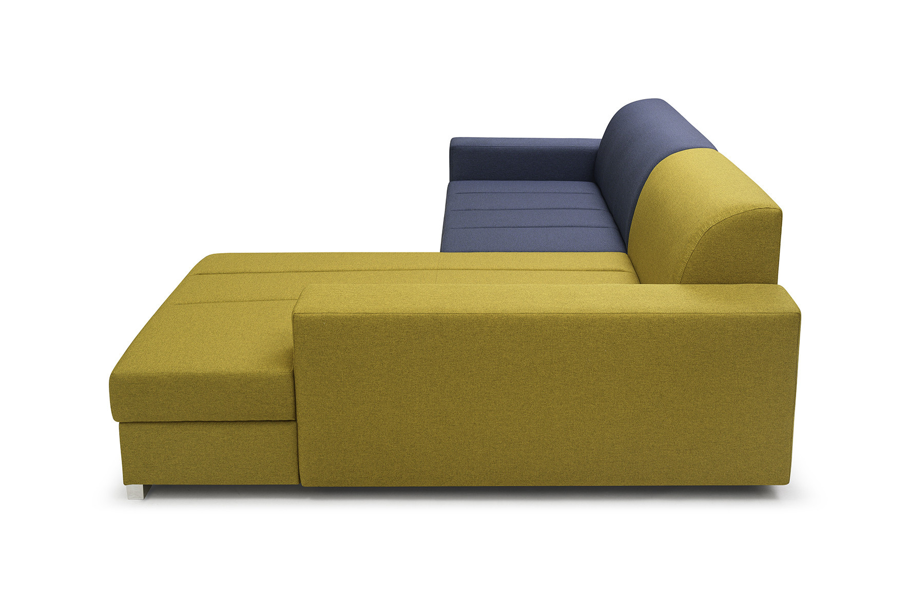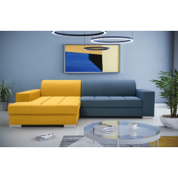 Rohová sedací souprava M2K je modernistický kvádr s estetickými, mírně zaoblenými tvary, který osloví i ty nejnáročnější uživatele. Nábytek potěší nejen svým jednoduchým designem, ale také zajistí pohodlí a komfort i při delším sezení. Rohová sedací souprava ve tvaru písmene L s bočnicemi je celá čalouněná látkou, jejíž barevné provedení si lze vybrat podle individuálních preferencí ze vzorníku barev. Rohová sedací souprava má dřevěný rám; vyznačuje se odolností a stabilitou. Originálním prvkem jsou chromované nožky. Mírně profilované opěradlo a dekorativně prošívaný sedák jsou vyplněny vlnitou pružinou a čalounickou pěnou, díky čemuž se na rohové sestavě neobjeví žádné nevzhledné deformace - nábytek bude stále vypadat jako nový. Rohová sedací souprava M2K je kus nábytku s automatickým rozkládacím mechanismem, který vám umožní rychle a efektivně se dostat k nádobě na lůžkoviny. Představený model ve tvaru písmene L má funkci spaní - hosté budou mít k dispozici pohodlné a bezpečné místo na spaní.