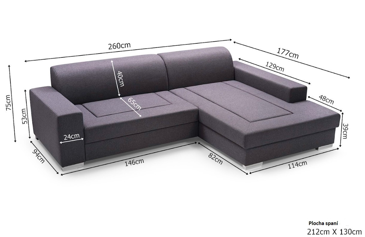 - rohová pohovka je k dispozici v pravém nebo levém provedení