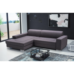 MALWA je rohová pohovka ve tvaru písmene L v modernistickém estetickém provedení. Tato moderně vyhlížející rohová pohovka bude dokonalým doplňkem prostoru obývacího pokoje nebo obývacího pokoje - lze ji umístit nejen ke stěně, ale i do střední části místnosti, protože je volně stojícím kusem nábytku a má čalouněná záda. Představená rohová sedací souprava je vybavena automatem typu delfín, který pomáhá při jejím rozkládání, takže rohovou sedací soupravu budete moci rychle a efektivně přeměnit na lůžko. Rohová pohovka pro více osob je umístěna na dřevěném rámu, který zaručuje odpovídající odolnost, stabilitu a pevnost. Moderní design doplňují chromované nohy. Rohová sedací souprava MALWA s bočnicemi má prostorný kontejner na lůžkoviny, do kterého můžete uložit nejen polštáře a přikrývky, ale také předměty denní potřeby, na které nám ve skříních a komodách nezbývá místo. Minimalistická rohová sedací souprava se vyznačuje vysokou praktičností pro každodenní použití - sedák je vyplněn vlnitými pružinami a čalounickou pěnou T-30, zatímco opěrák je zakončen HR pěnou. Rozkládací rohová pohovka zaujme moderním designem a ozdobným prošíváním viditelným na sedáku, díky němuž kolem ní nikdo neprojde bez povšimnutí.