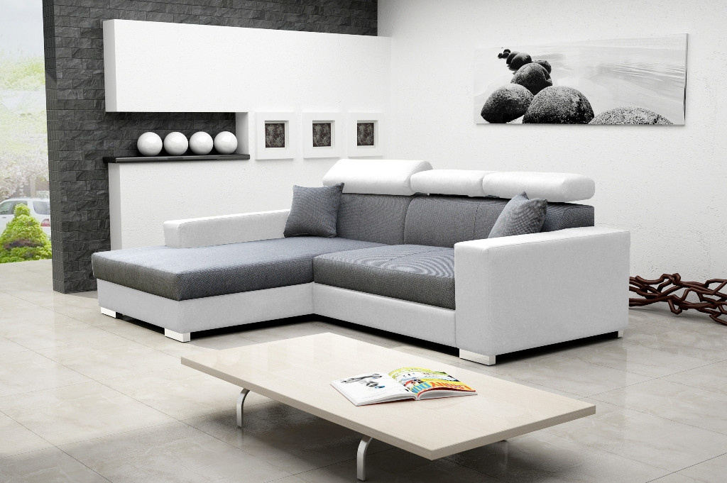 Sedací souprava MEXICO má moderní design, který se skvěle hodí do prostoru minimalistického nebo skandinávského obývacího pokoje. Stylová rohová sedací souprava je rozkládací kus nábytku, který je k dispozici v pravém nebo levém provedení. Rohová sedací souprava MEXICO ve tvaru písmene L má prostornou nádobu na lůžkoviny a je vybavena také funkcí spaní, takže ji lze rozložit. Rohová pohovka pro tři osoby je umístěna na dřevěném rámu a chromovaných nožkách, díky čemuž bude nejen stabilním a odolným kusem nábytku, ale také mimořádně estetickým a originálním. Nábytek je vyplněn vlnitými pružinami a čalounickou pěnou, tedy materiály, které se postarají o správnou pružnost - díky nim se na rohové pohovce ani přes neustálé používání neobjeví nevzhledné otlaky. Rohová sedací souprava MEXICO s bočnicemi je kus nábytku, který může být potažen látkou, koženkou .