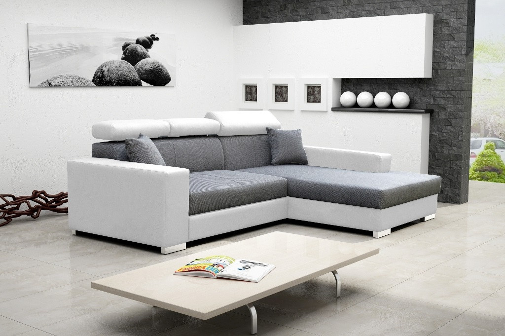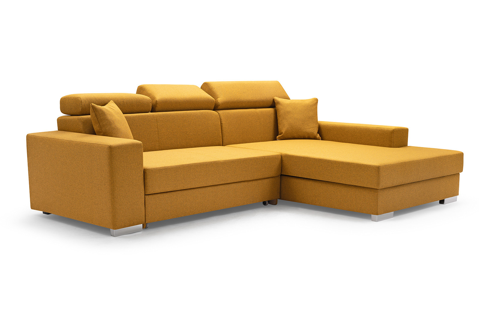 Sedací souprava MEXICO má moderní design, který se skvěle hodí do prostoru minimalistického nebo skandinávského obývacího pokoje. Stylová rohová sedací souprava je rozkládací kus nábytku, který je k dispozici v pravém nebo levém provedení. Rohová sedací souprava MEXICO ve tvaru písmene L má prostornou nádobu na lůžkoviny a je vybavena také funkcí spaní, takže ji lze rozložit. Rohová pohovka pro tři osoby je umístěna na dřevěném rámu a chromovaných nožkách, díky čemuž bude nejen stabilním a odolným kusem nábytku, ale také mimořádně estetickým a originálním. Nábytek je vyplněn vlnitými pružinami a čalounickou pěnou, tedy materiály, které se postarají o správnou pružnost - díky nim se na rohové pohovce ani přes neustálé používání neobjeví nevzhledné otlaky. Rohová sedací souprava MEXICO s bočnicemi je kus nábytku, který může být potažen látkou, koženkou .