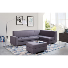 Rohová sedací souprava MIX je k dispozici s moderním a praktickým taburetem, na kterém můžete nejen volně sedět, ale také ho používat jako podnožku při odpočinku. Rozkládací rohová sedací souprava ve tvaru písmene L je k dispozici jako pravostranná nebo levostranná varianta(není universální), takže si prezentovaný model můžete libovolně přizpůsobit svým individuálním preferencím. Rohová sedací souprava stojí na chromových nožkách, díky nimž získává celek moderní charakter. Stylová rohová pohovka s ozdobným prošíváním viditelným na sedáku je čalouněná látkou, kterou si můžete vybrat z široké škály barev. V sedací části jsou použity vlnité pružiny a čalounická pěna T-30, takže na rohové pohovce MIX ani na taburetu nevznikají nevzhledné promáčkliny nebo deformace. Jednostranný nábytek je umístěn na dřevěném rámu pro větší odolnost a stabilitu. Nabízená rohová sedací souprava s mírně profilovaným opěradlem je vybavena funkcí spaní, která umožňuje její efektivní rozložení, a také prostorným kontejnerem na lůžkoviny, do kterého se snadno vejde přikrývka, polštáře a deky. Model MIX spolu s pufem bude působivě vypadat v moderním a minimalistickém uspořádání a zároveň poskytne komfort a pohodlí při odpočinku a spánku.
