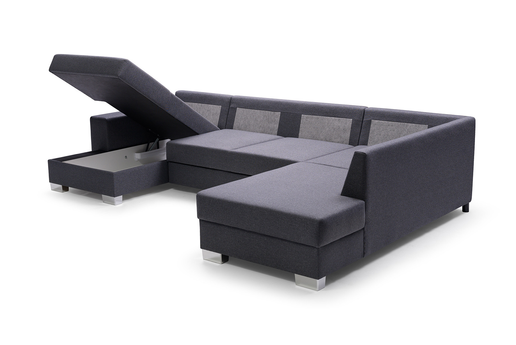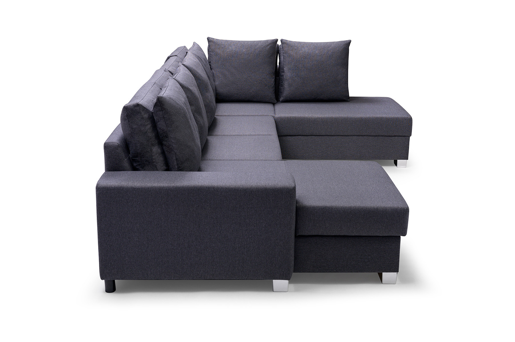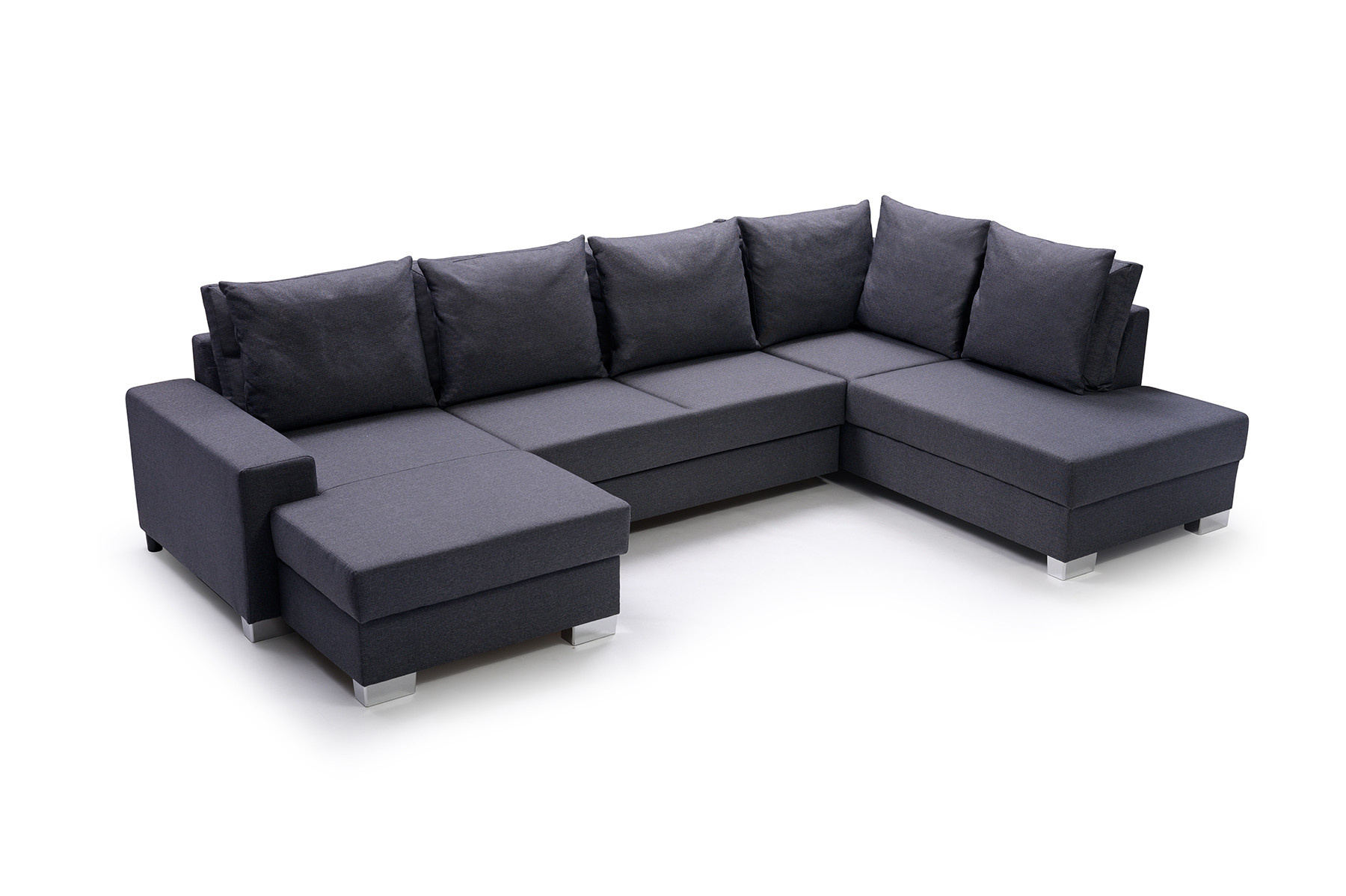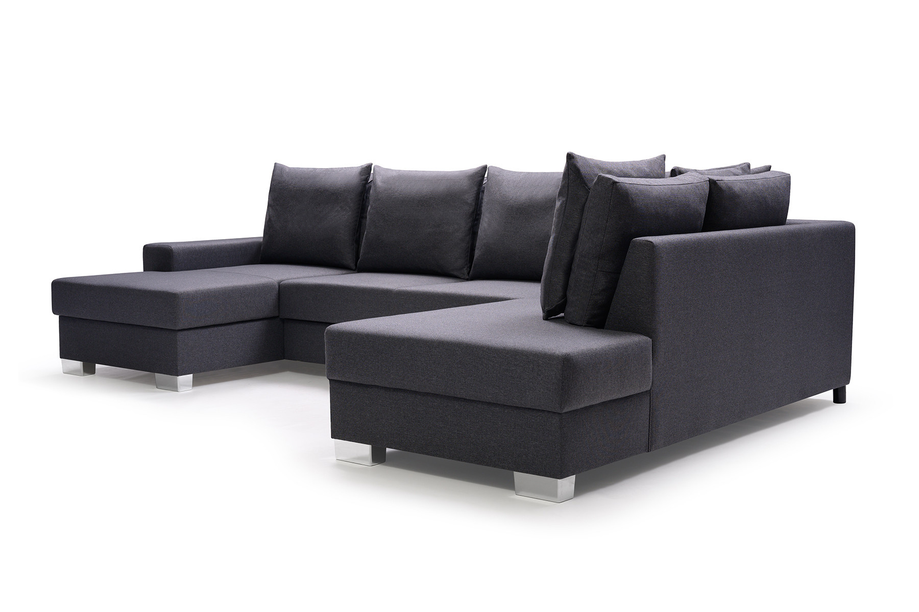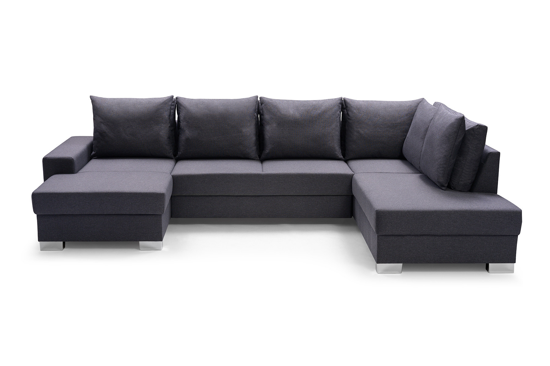 Stylová rohová pohovka OXI s bočnicemi je rozkládací konstrukce pro více osob, která je k dispozici v levém nebo pravém provedení. Moderní rohová pohovka se stylovým designem se bude skvěle vyjímat u stěny v obývacím pokoji i uprostřed místnosti - jedná se o kus nábytku čalouněný látkou i na zadní straně. Výrobek je zhotoven na individuální objednávku - je plně přizpůsobitelný, např. barvu látky si můžete vybrat z široké škály barev dostupných ve vzorníku. Elegantní rohová sedací souprava OXI ve tvaru U je vybavena automatickou jednotkou typu delfín pro snadné rozkládání. Rohová sedací souprava má pod sedákem prostorný úložný prostor na lůžkoviny, takže při rozkládání nábytku nemusíte přecházet do jiné místnosti pro lůžkoviny. Model OXI zaujme chromovanými nohami a polštáři, které jsou umístěny na mírně profilovaném opěradle. Sedák a spací plocha jsou vyplněny vlnitou pružinou a čalounickou pěnou T-30, díky čemuž máme záruku, že se na nich i přes neustálé používání neobjeví nevzhledné promáčkliny. Rozkládací rohová pohovka OXI je praktický kus nábytku, který nikdo nepřejde lhostejně.