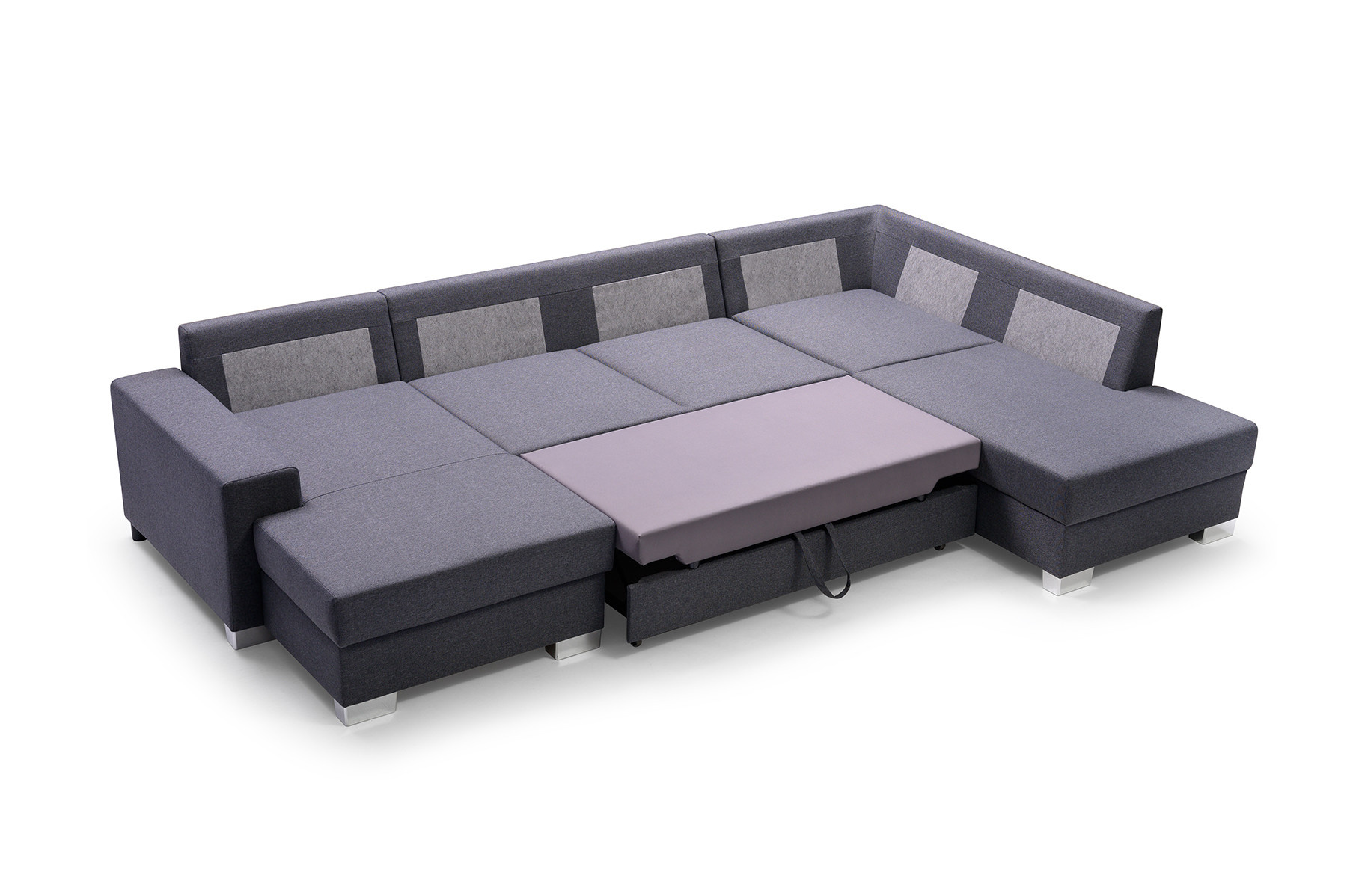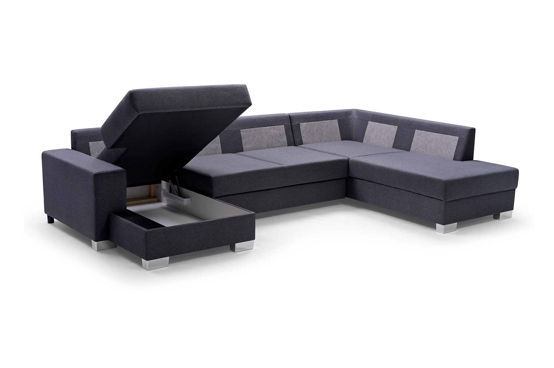 Stylová rohová pohovka OXI s bočnicemi je rozkládací konstrukce pro více osob, která je k dispozici v levém nebo pravém provedení. Moderní rohová pohovka se stylovým designem se bude skvěle vyjímat u stěny v obývacím pokoji i uprostřed místnosti - jedná se o kus nábytku čalouněný látkou i na zadní straně. Výrobek je zhotoven na individuální objednávku - je plně přizpůsobitelný, např. barvu látky si můžete vybrat z široké škály barev dostupných ve vzorníku. Elegantní rohová sedací souprava OXI ve tvaru U je vybavena automatickou jednotkou typu delfín pro snadné rozkládání. Rohová sedací souprava má pod sedákem prostorný úložný prostor na lůžkoviny, takže při rozkládání nábytku nemusíte přecházet do jiné místnosti pro lůžkoviny. Model OXI zaujme chromovanými nohami a polštáři, které jsou umístěny na mírně profilovaném opěradle. Sedák a spací plocha jsou vyplněny vlnitou pružinou a čalounickou pěnou T-30, díky čemuž máme záruku, že se na nich i přes neustálé používání neobjeví nevzhledné promáčkliny. Rozkládací rohová pohovka OXI je praktický kus nábytku, který nikdo nepřejde lhostejně.