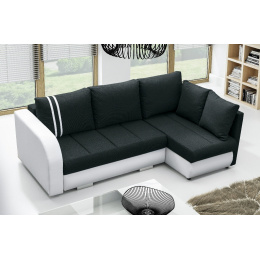 Moderní rohová sedací souprava R-CITY má elegantní design, který osloví milovníky praktických a zároveň vysoce estetických řešení. Rohová sedací souprava ve tvaru L je vybavena automatickým rozkládáním, díky němuž je velmi snadný přístup ke dvěma kontejnerům na lůžkoviny, kam lze bez větších problémů uložit přikrývky, polštáře a peřiny. Rohová pohovka s funkcí spaní umožňuje pohodlné a bezpečné ubytování hostů. Rohová sedací souprava je k dispozici v pravém nebo levém provedení podle vašeho výběru. Dřevěný rám poskytuje nábytku dostatečnou odolnost a stabilitu. Sedák je čalouněný čalounickou pěnou a vlnitými pružinami, které se starají o zachování pružnosti nábytku, takže na něm nevznikají nevzhledné promáčkliny ani deformace. Model R-CITY se dodává s dekorativními polštářky, které jsou dokonalým doplňkem moderního uspořádání. Originálním akcentem rohové sedací soupravy jsou chromované nohy, které podtrhují stylový charakter konstrukce. Rohová pohovka s bočnicemi zaujme na první pohled dekorativně prošívaným sedákem. Volně stojící kus nábytku je čalouněný látkou; na výběr je také látka Magic Home odolná proti skvrnám, která je k dispozici ve druhé cenové skupině. Barevné provedení rohové sedací soupravy R-CITY si můžete vybrat podle dostupného vzorníku barev.