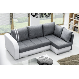 Moderní rohová sedací souprava R-CITY má elegantní design, který osloví milovníky praktických a zároveň vysoce estetických řešení. Rohová sedací souprava ve tvaru L je vybavena automatickým rozkládáním, díky němuž je velmi snadný přístup ke dvěma kontejnerům na lůžkoviny, kam lze bez větších problémů uložit přikrývky, polštáře a peřiny. Rohová pohovka s funkcí spaní umožňuje pohodlné a bezpečné ubytování hostů. Rohová sedací souprava je k dispozici v pravém nebo levém provedení podle vašeho výběru. Dřevěný rám poskytuje nábytku dostatečnou odolnost a stabilitu. Sedák je čalouněný čalounickou pěnou a vlnitými pružinami, které se starají o zachování pružnosti nábytku, takže na něm nevznikají nevzhledné promáčkliny ani deformace. Model R-CITY se dodává s dekorativními polštářky, které jsou dokonalým doplňkem moderního uspořádání. Originálním akcentem rohové sedací soupravy jsou chromované nohy, které podtrhují stylový charakter konstrukce. Rohová pohovka s bočnicemi zaujme na první pohled dekorativně prošívaným sedákem. Volně stojící kus nábytku je čalouněný látkou; na výběr je také látka Magic Home odolná proti skvrnám, která je k dispozici ve druhé cenové skupině. Barevné provedení rohové sedací soupravy R-CITY si můžete vybrat podle dostupného vzorníku barev.