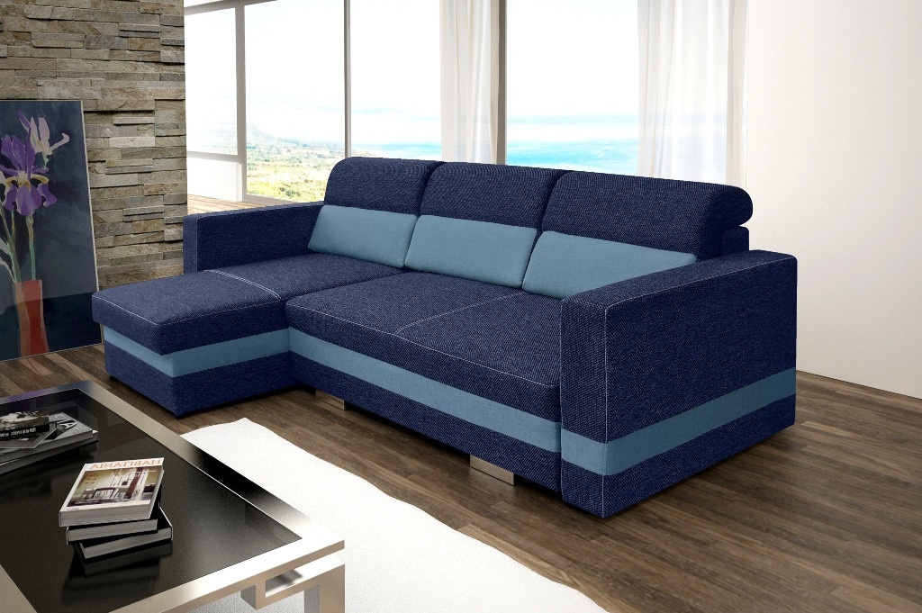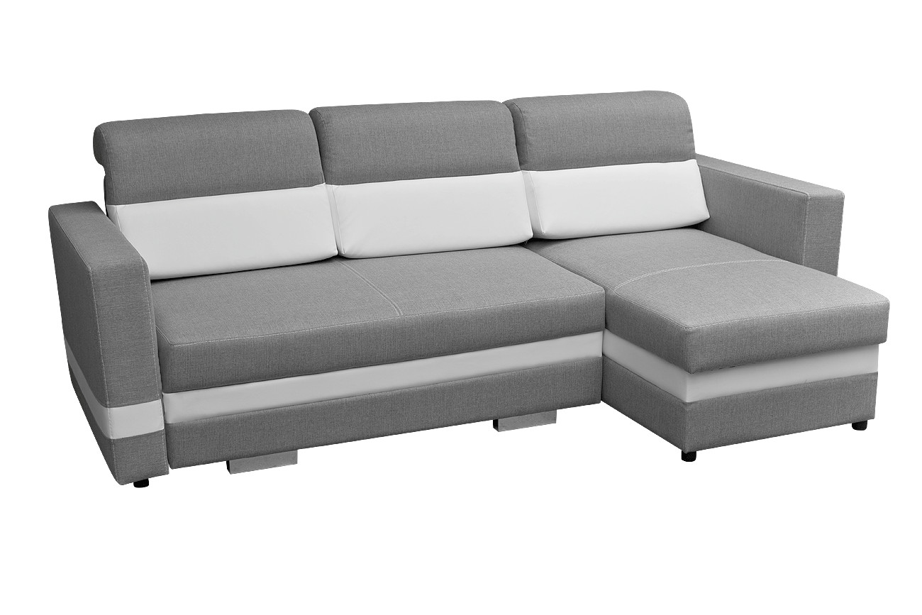 Moderní rohová sedací souprava s bočnicemi R-MINI je konstrukce pro více osob, která je umístěna na dřevěném rámu zajišťujícím její náležitou odolnost a stabilitu. Rozkládací rohovou sedací soupravu lze čalounit látkou nebo koženkou, jejíž barvy lze vybrat z dostupných vzorníků. Rohová sedací souprava ve tvaru písmene L je k dispozici ve dvou provedeních: pravém nebo levém. Model R-MINI stojí na chromovaných nožkách, které dokonale doplňují moderní design. Představená rohová pohovka je kus nábytku vybavený automatickým rozkládacím mechanismem, díky němuž můžete rohovou pohovku rychle a efektivně přeměnit na lůžko. R-MINI má dva kontejnery na lůžkoviny pro uložení přikrývek, polštářů a peřin. Rohová sedací souprava určená k uspořádání obývacího pokoje je vyplněna vlnitými pružinami a čalounickou pěnou, které zaručují správnou pružnost, takže se na sedací soupravě ani při nepřetržitém používání neobjeví nevzhledné promáčkliny.
