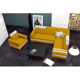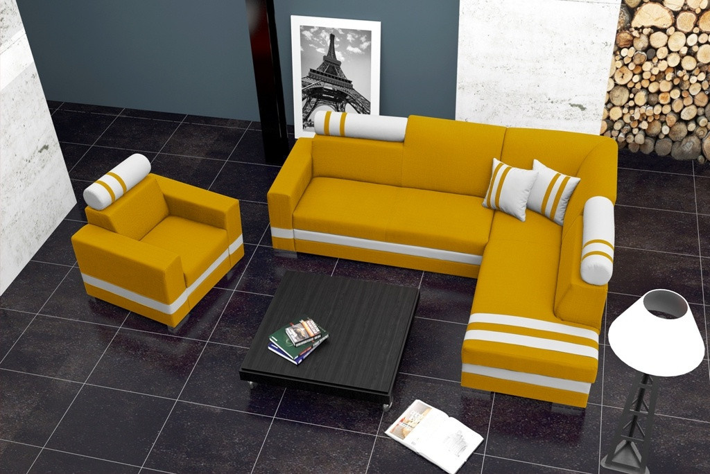 Rohová sedací souprava R1 je moderního tvaru, který osloví náročné uživatele, kteří oceňují nejen vysokou estetiku nábytku, ale také jeho praktičnost a pohodlí při každodenním používání. Rohová sedací souprava ve tvaru písmene L je k dispozici v pravostranném a levostranném provedení, takže si každý najde variantu, která nejlépe vyhovuje jeho individuálním preferencím. Rohová sedací souprava s bočnicemi se bude skvěle hodit do prostoru obývacího pokoje nebo i obývacího pokoje, protože díky funkci spaní, která umožňuje nábytek rozložit, na něm budou moci přespat hosté. Moderní rohová sedací souprava je vyplněna vlnitými pružinami a čalounickou pěnou, díky čemuž si nábytek zachovává požadovanou pružnost. Volně stojící rohová pohovka s dřevěným rámem a chromovanými nohami je doplněna dekorativními polštáři. Rozkládací rohová pohovka je vybavena dvěma zaoblenými opěrkami hlavy, které zaručují maximální pohodlí při relaxaci. Model R1 je vybaven prostorným úložným prostorem na lůžkoviny, do kterého budete moci bez větších problémů uložit přikrývky, peřiny a polštáře, a nezabírat tak cenné místo v komodách a skříních.