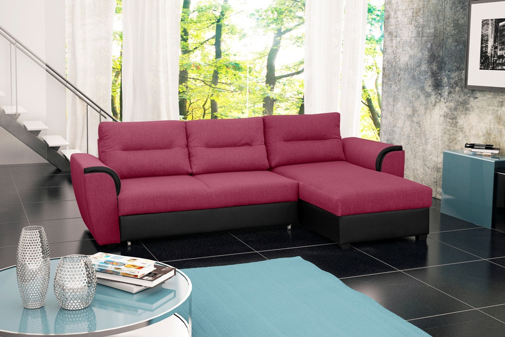 Moderní rohová sedací souprava TOMEK je ideální pro uspořádání interiéru obývacího pokoje, který je na jedné straně reprezentativním prostorem a na druhé straně místem pro odpočinek. Rohová sedací souprava ve tvaru písmene L je k dispozici ve dvou variantách výběru stran - pravé nebo levé -, takže ji lze přizpůsobit jakémukoli tvaru místnosti. Rohová sedací souprava TOMEK s bočnicemi na sedáku je vyplněna vlnitou pružinou a čalouněním z pěny T-30, takže na sedací soupravě nevznikají nevzhledné deformace způsobené sezením. Představená rohová sedací souprava s dřevěným rámem zaručuje svým uživatelům komfort a pohodlí při sezení, stejně jako pevnost své konstrukce, která je celá doplněna chromovanými nožkami. Protože je rohová pohovka volně stojícím kusem nábytku, má také čalouněná záda - lze ji umístit nejen ke stěně, ale také do středu místnosti. Model TOMEK je vybaven úložným prostorem na lůžkoviny pro uložení přikrývek, polštářů a peřin. Rohová sedací souprava s bočnicemi má funkci spaní, která umožňuje její rozložení. Nabízená rohová sedací souprava může být vyhotovena v široké škále barev.