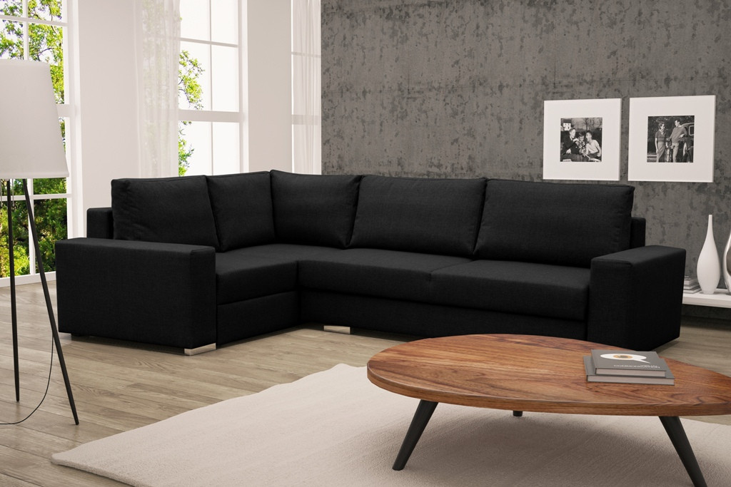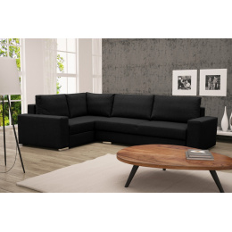 Rozkládací rohová pohovka TORNADO je prostorný volně stojící kus nábytku, který je k dispozici v pravém nebo levém provedení. Představená rohová sedací souprava s bočnicemi ve tvaru písmene L je vybavena dekorativními polštáři, které lze umístit na opěradlo nábytku. Moderní rohová sedací souprava do obývacího pokoje je nábytek pro více osob, který zaujme estetickým designem a doplňkovými chromovanými nožkami. Rohová pohovka je praktická při každodenním používání a zaručuje pohodlí a komfort i při několikahodinovém sezení nebo odpoledním spánku. Rohová pohovka je vybavena automatickým rozkládáním, díky němuž ji lze efektivně přeměnit na lůžko. Nábytek s dřevěným rámem má dva úložné prostory na lůžkoviny, do kterých můžete snadno uložit peřiny, polštáře a přikrývky, ale i předměty denní potřeby, které se nevejdou do skříně. Model TORNADO je rohová sedací souprava, která je vyplněna vlnitými pružinami a čalounickou pěnou - ani její časté používání neovlivní pružnost sedáku nebo opěráku. Rohová sedací souprava s funkcí spaní je čalouněná látkou, jejíž barvy si můžete vybrat z dostupných barevných vzorků.