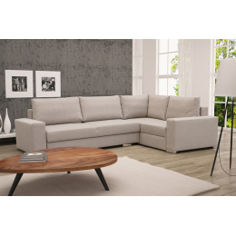 Rozkládací rohová pohovka TORNADO je prostorný volně stojící kus nábytku, který je k dispozici v pravém nebo levém provedení. Představená rohová sedací souprava s bočnicemi ve tvaru písmene L je vybavena dekorativními polštáři, které lze umístit na opěradlo nábytku. Moderní rohová sedací souprava do obývacího pokoje je nábytek pro více osob, který zaujme estetickým designem a doplňkovými chromovanými nožkami. Rohová pohovka je praktická při každodenním používání a zaručuje pohodlí a komfort i při několikahodinovém sezení nebo odpoledním spánku. Rohová pohovka je vybavena automatickým rozkládáním, díky němuž ji lze efektivně přeměnit na lůžko. Nábytek s dřevěným rámem má dva úložné prostory na lůžkoviny, do kterých můžete snadno uložit peřiny, polštáře a přikrývky, ale i předměty denní potřeby, které se nevejdou do skříně. Model TORNADO je rohová sedací souprava, která je vyplněna vlnitými pružinami a čalounickou pěnou - ani její časté používání neovlivní pružnost sedáku nebo opěráku. Rohová sedací souprava s funkcí spaní je čalouněná látkou, jejíž barvy si můžete vybrat z dostupných barevných vzorků.