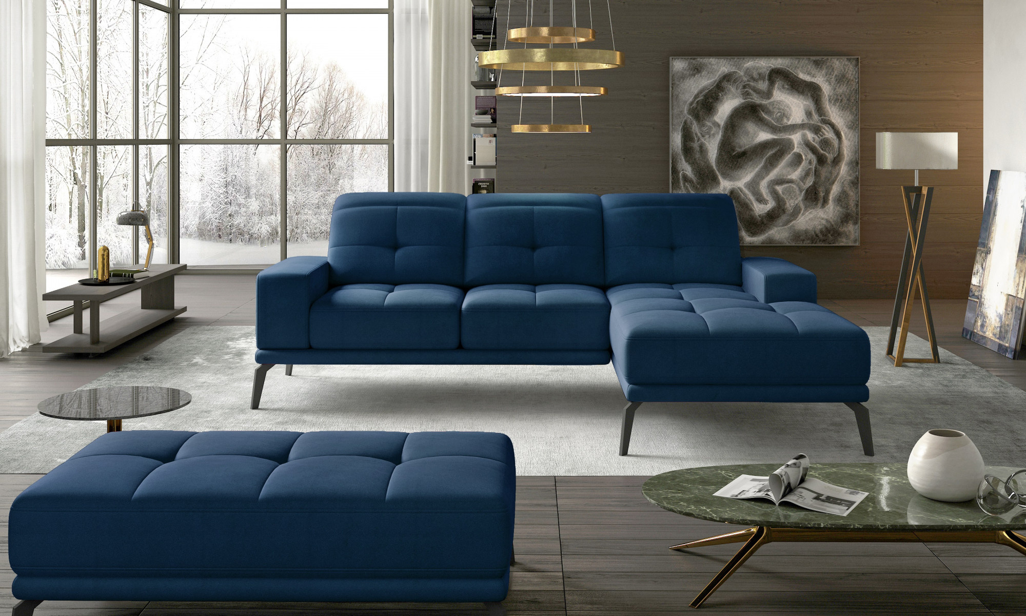 Rohová sedačka Torrense + Taburet Monolith 77 140x215 Pravá