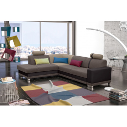 Rozkládací rohová pohovka VERATTI je moderní kus nábytku, který bude dokonalým doplňkem obývacího pokoje. Rohová sedací souprava ve tvaru písmene L je k dispozici jako pravostranná nebo levostranná varianta, takže si každý může nábytek přizpůsobit tvaru zařízené místnosti. Tvarově zajímavá rohová sedací souprava je vybavena prostorným kontejnerem na lůžkoviny a funkcí spaní, díky níž lze nábytek rozložit. Rohová sedací souprava pro tři osoby do obývacího pokoje je kus nábytku se středně velkým opěradlem a je vybavena dvěma opěrkami hlavy, které uživateli umožní maximální relaxaci i při dlouhém odpočinku. Spolu s rozkládací rohovou pohovkou jsou v sadě k dispozici dekorativní polštáře. Stabilní kus nábytku s dřevěným rámem je umístěn na chromovaných nohách, které zajišťují nejen odolnost kusu nábytku, ale také zdůrazňují jeho originální charakter. Jednostranná rohová pohovka VERATTI je čalouněna tradiční látkou. Představený model může mít barevné provedení odpovídající individuálnímu vkusu a preferencím, protože si můžete vybrat z bohatého vzorníku barev. Model VERATTI je kus nábytku s čalouněnými zády, a tedy volně stojící kus nábytku, takže jej lze umístit nejen ke stěně, ale i do centrální části místnosti.